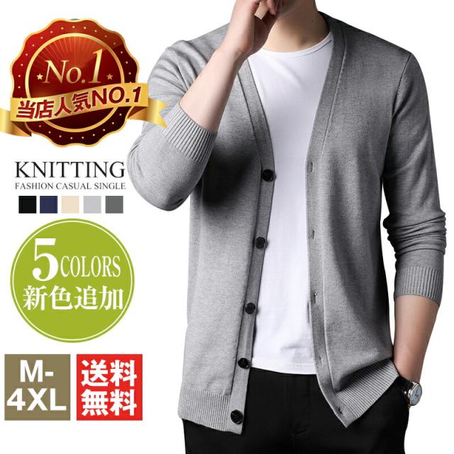 カーディガン メンズ カーデ vネック トップス カーディガン 続々入荷中 黒 紺色 ライトグレー ダックグレー カーキ M L XL 2XL 3XL 4XL