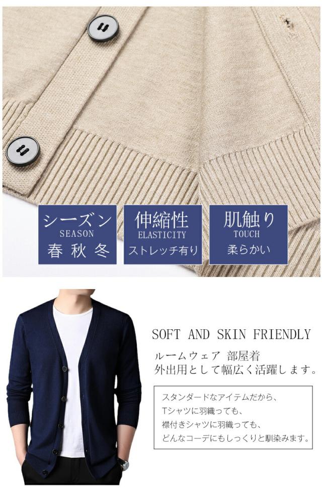 カーディガン メンズ カーデ vネック スクールカーディガン 事務服 定番 大きいサイズ フライスカーディガン 柔らかい 無地 長袖 綿混 V首 リブ編み カラーカーディガン ニットジャケット ビジネ
