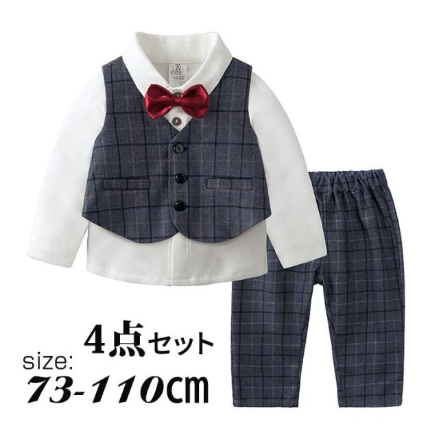 ベビー服 男の子 スーツ 4点セット キッズ スーツ カジュアルセットアップ スーツ 豊富な品揃え 73cm 80cm 90cm 100cm 110cm