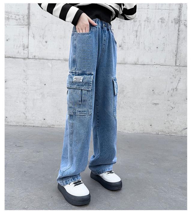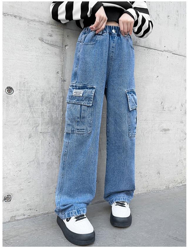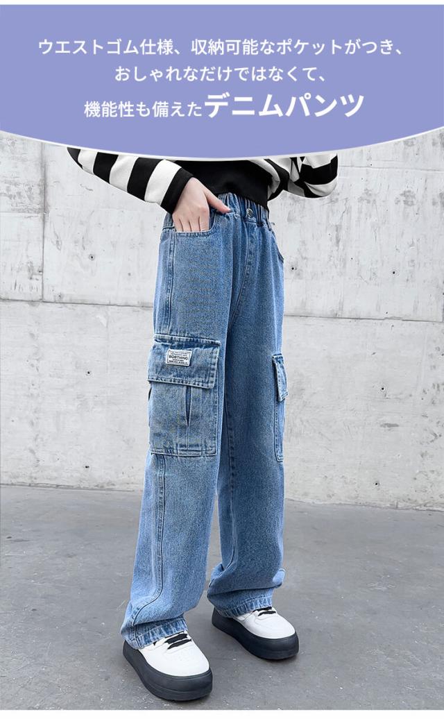 120-170cm ワイドパンツ ガールズ デニム パンツ 子供 大人 ゴムウエスト ガウチョ 女の子 ジーンズデニムワイドパンツ ハイウエスト きれいめ ボトムス ゆるパンツ ウエストゴム 着痩せ