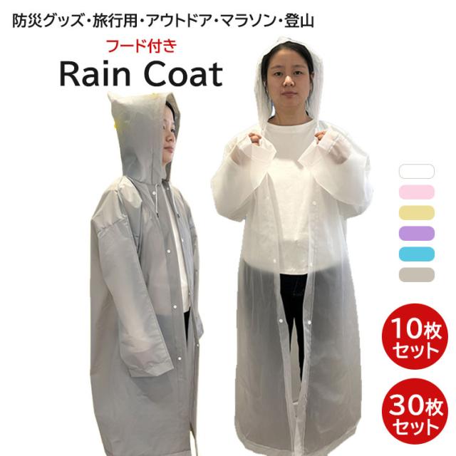 レインコート 10枚 30枚セット 環境にやさしい 使い捨て EVAレインコート レジャー 旅行 フェス 避難 地震 防災グッズ アウトドア マラソン 登山 小雨対策 コンパクト 6色 フリーサイズ