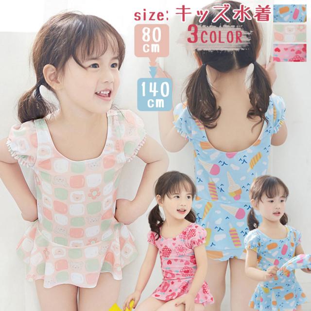 女の子 水着 ワンピース水着 キッズ キッズ 水着 続々登場 ハナ くま アイスクリーム 2# 4# 6# 8# 10# 12#