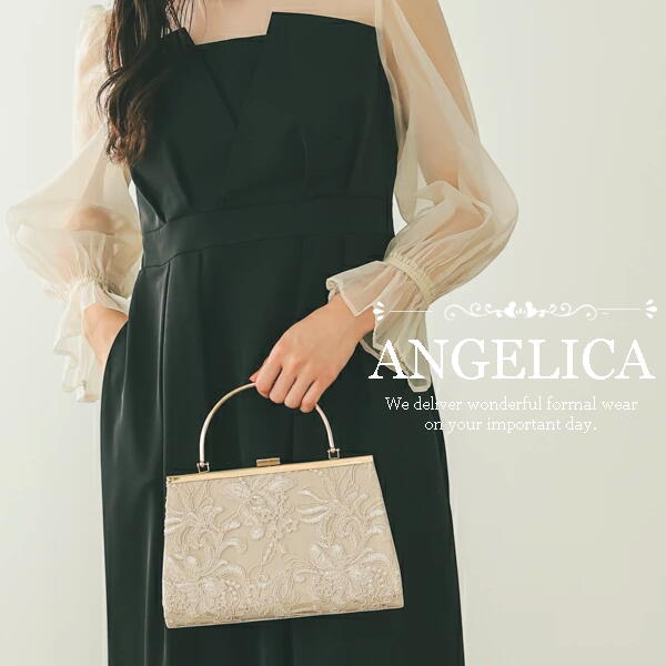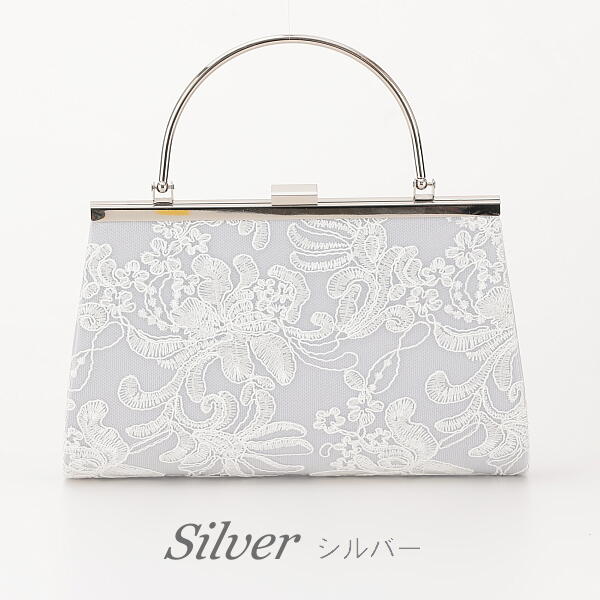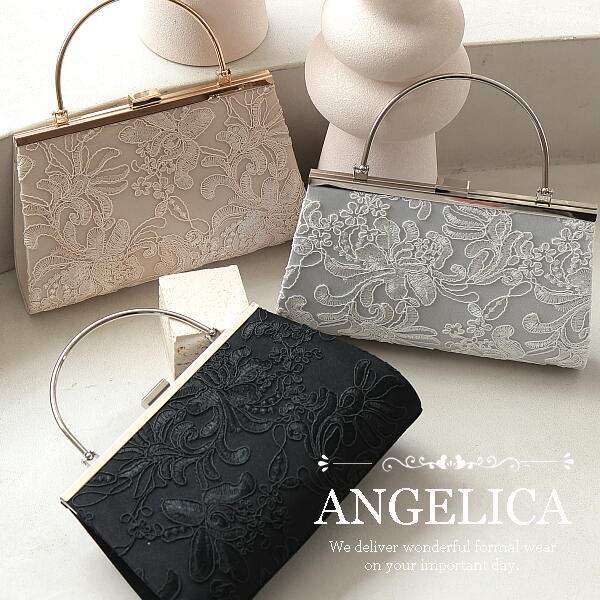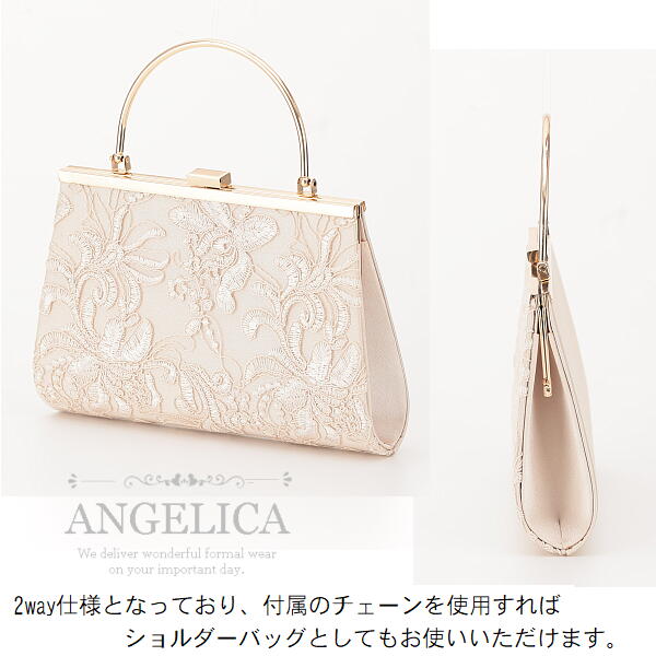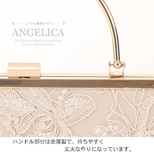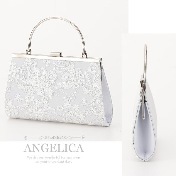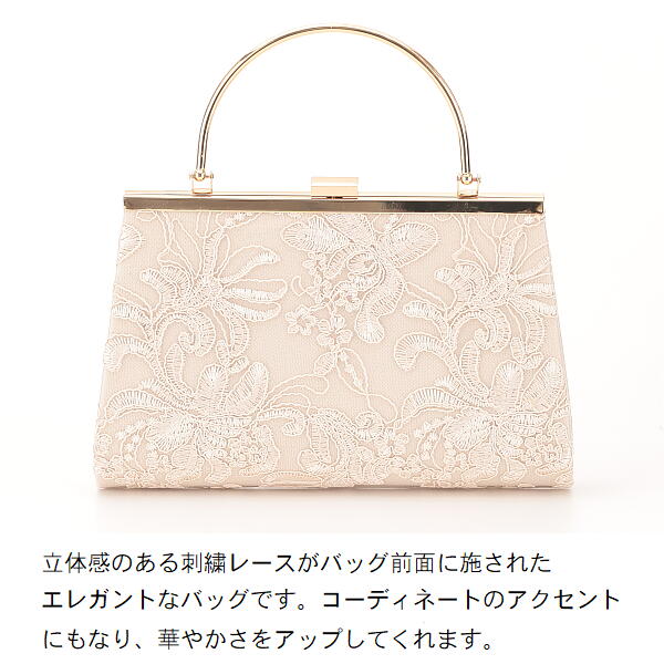 立体感のある刺繍レースがバッグ前面に施されたエレガントなバッグです。