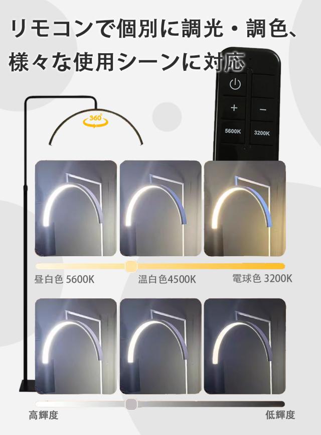 フロアライト 半月ライト おしゃれ 北欧 調光調色 省エネ リモコン付き スマホホルダー付き 360度回転 間接照明 目に優しい led 照明器具 スタンドライト フロアスタンド フロアランプ 床置き モダン リビング 寝室 癒やし ハーフムーンライト 角度調整