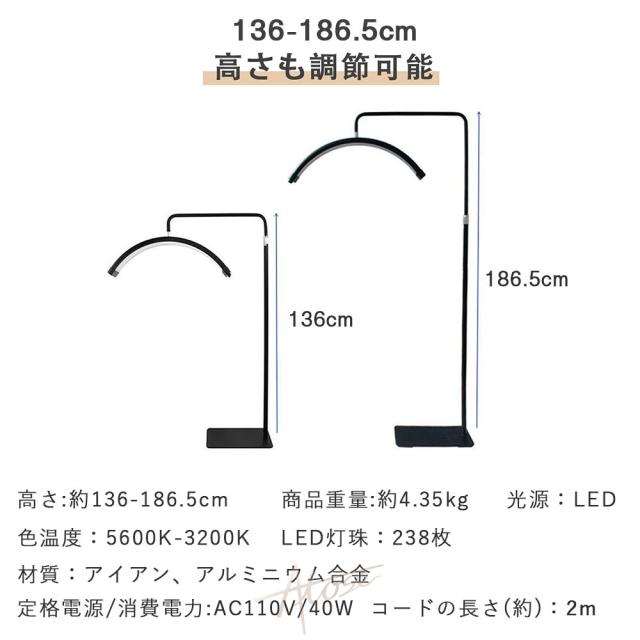【安定したスタンド】アルミニウム合金製のライト スタンドを装備し、安定性と防振性があり、さまざまなニーズに合わせて高さを 136 cm から 186 cm まで調整できます。