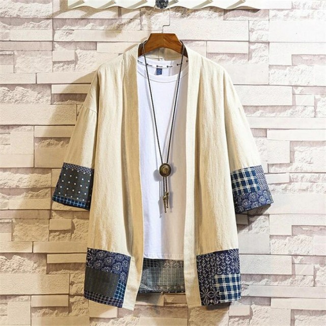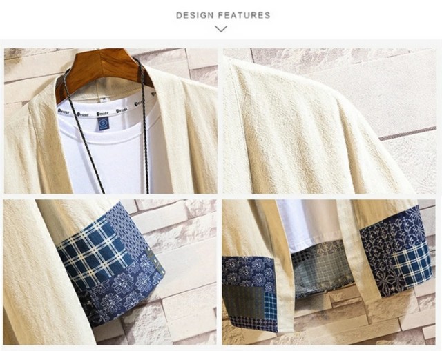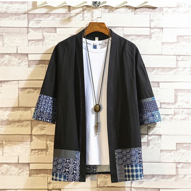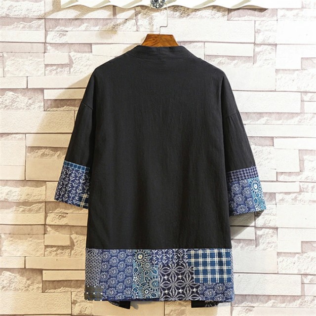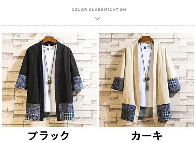 羽織 メンズ 甚平風 ジャケット 浴衣 カーディガン 切替 薄手 夏 サマー 七分袖 和服風 おしゃれ 夏新作