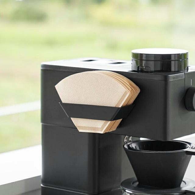 ●フィルムフックでコーヒーメーカーに直接取り付けられるコーヒーペーパーフィルターストッカー。