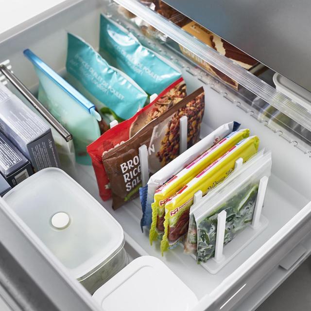●冷凍庫の食品を立てて整理できる冷凍庫中収納スタンドです。