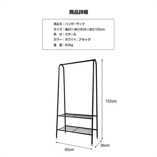 ハンガーラック スリム おしゃれ パイプハンガー 幅60cm 省スペース 室内 物干し 収納整理 簡単組立 大容量 おしゃれ 衣類収納 洋服かけ 一人暮らし 部屋 送料無料