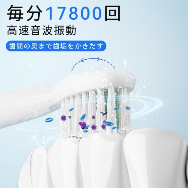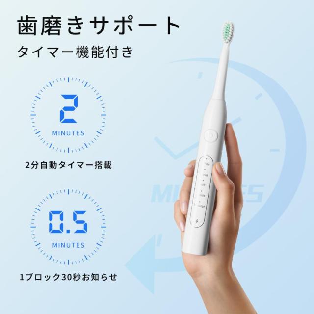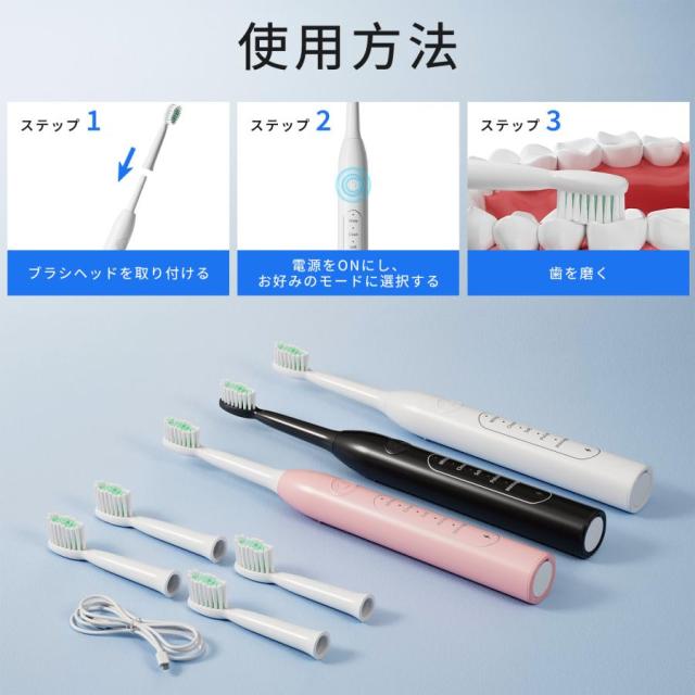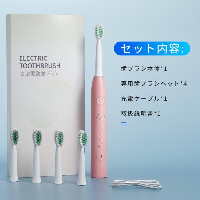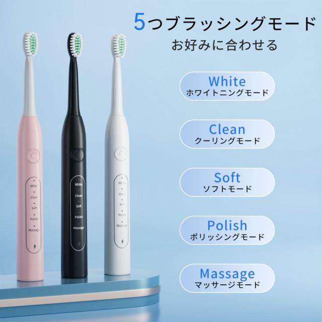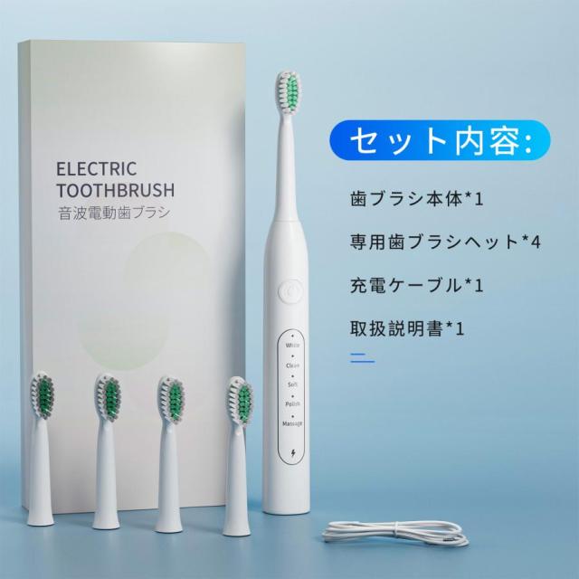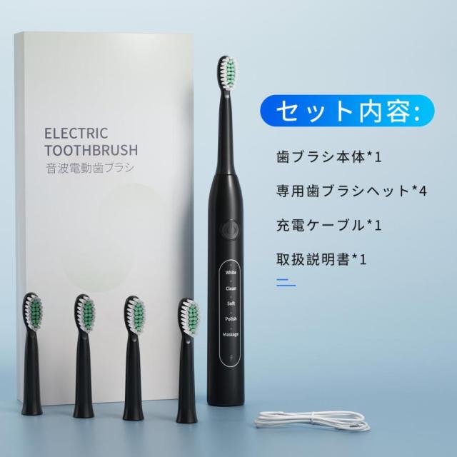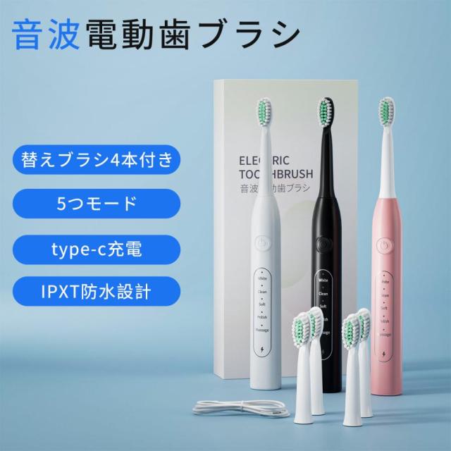 電動歯ブラシ 歯磨き 歯ブラシ 5モード 音波 振動 歯垢除去 Type-C充電 静音設計 IPX7防水 水洗い 替えブラシ4本