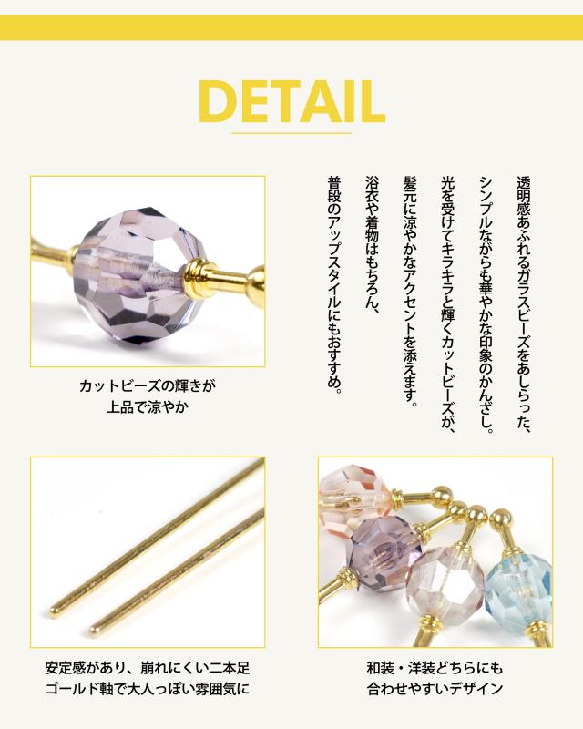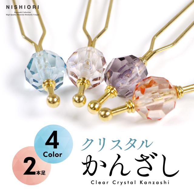 クリスタルのような輝きが美しい 二本差し 簪 選べる4色 透明 ブルー オレンジ ピンク パープル 髪飾り浴衣 振袖 留袖 訪問着 婚礼 結婚式 卒業式 袴 和装 着物 ヘアアクセサリー ゴールド 送料無料