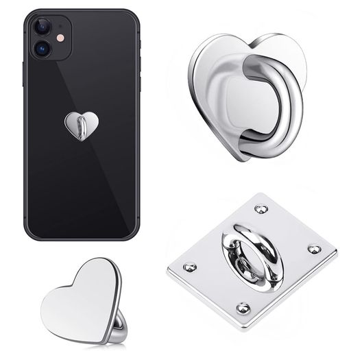 キーリングハンガー 【2個】 キーリング スマホリング スマホアクセサリー パーツ DIY 貼り付け フック金具 メタル製携帯電話チェーン ハート形+長方形