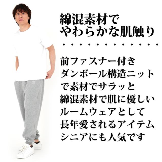 スウェット パンツ メンズ シニア ボトムス 大きいサイズ ホッピング スポーツウェア ルームウェア 部屋着 ロングパンツ 裾リブ 前ファスナー ギフト プレゼント さらっとした肌触り 送料無料