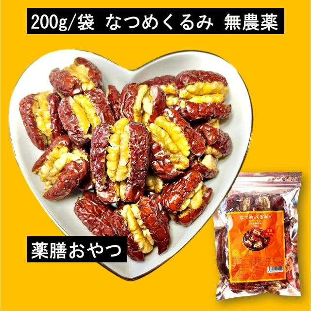 なつめくるみ200g 棗 くるみ 無農薬くるみ 日本で244項目の農薬検査で一切不検出 完全無添加 ナツメ 胡桃 クルミ ナッツ 保存料 白砂糖不使用 菓子 おやつ 女神のウキウキ薬膳 父の日 送料無料