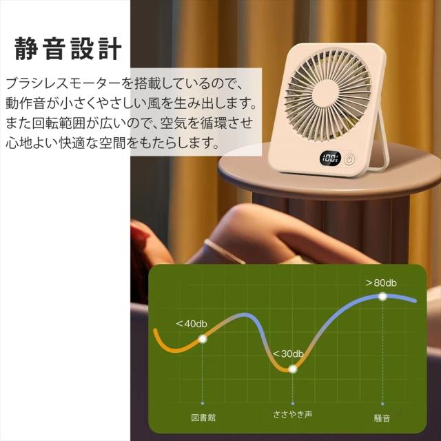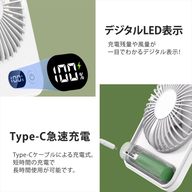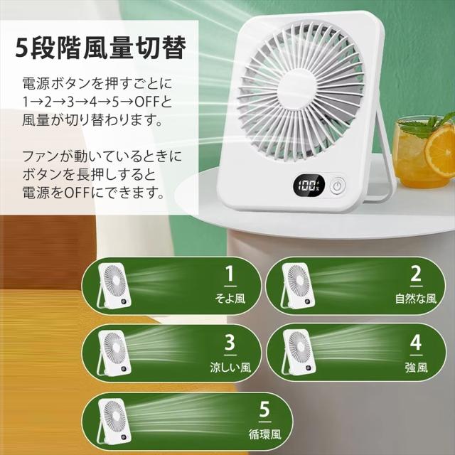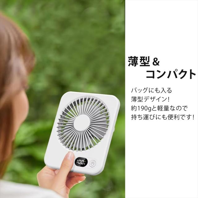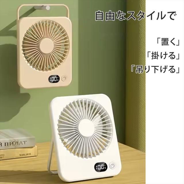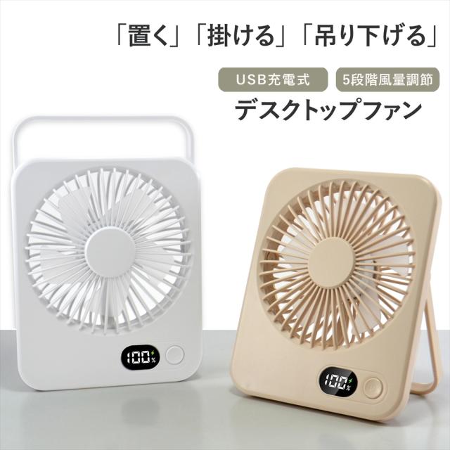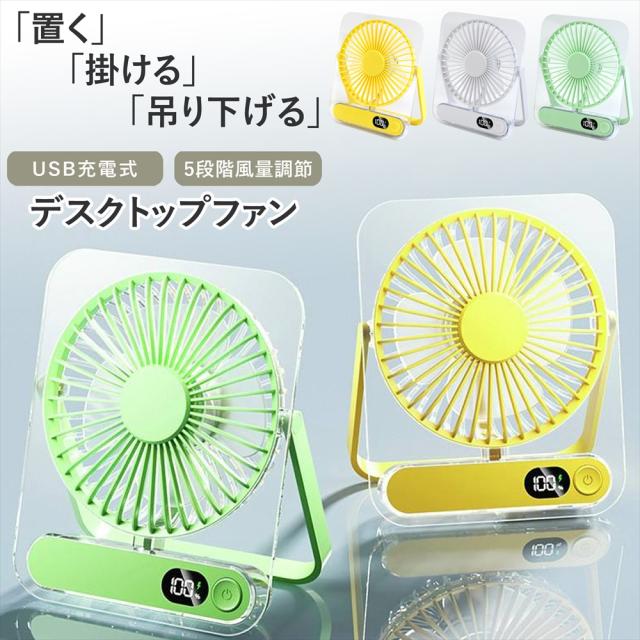 卓上 ファン デスクファン 卓上扇風機 小型扇風機 ミニファン 薄型 スリム 静音 5段階風量調節 デスクトップファン 扇風機 3WAY 吊り下げ USB充電式 充電残量表示 デジタルLED表示 角度調整 180° コンパクト 41mm コードレス 省スペース 静か