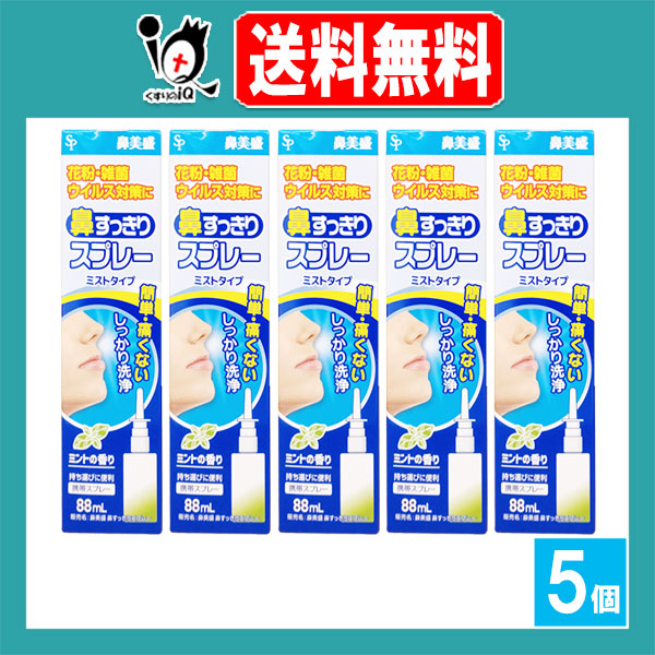 【一般医療機器】鼻美盛 鼻すっきりスプレー 88mL×5個セット【サイキョウ・ファーマ】花粉・雑菌・ウイルス対策に 簡単・痛くない しっかり鼻洗浄 ミストタイプ ミントの香り 鼻洗浄器 鼻用洗浄器