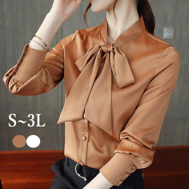 ブラウス シャツ リボンブラウスシャツ ボウタイブラウストップス シフォン ネックリボン スーツ インナー 胸元 長袖 大きいサイズ カジュアル 通勤 卒業式 卒園式 オフィス S M L 2L 3L