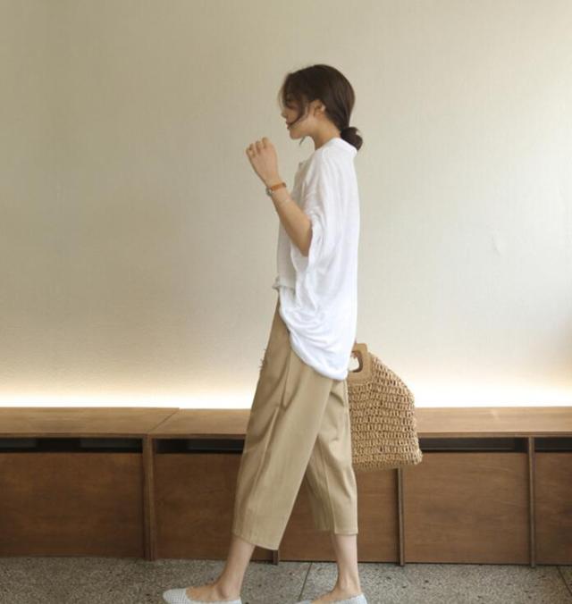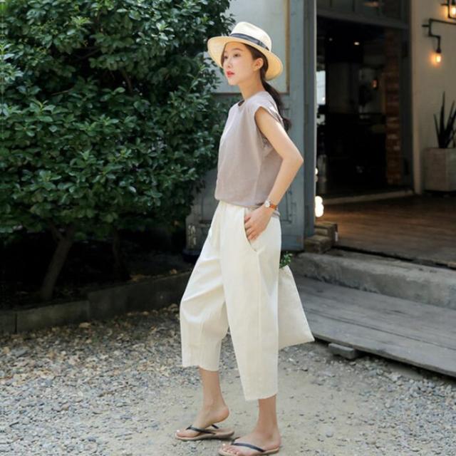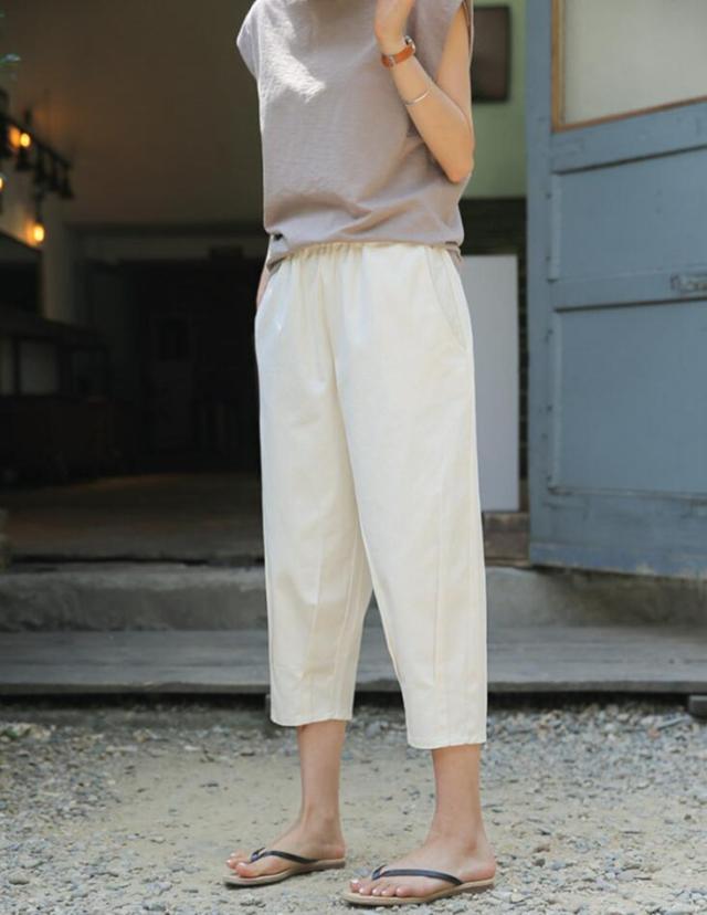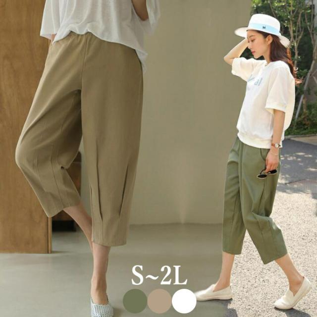 サルエル チノパン レディース テーパードパンツ クロップドパンツ ゆるパンツ パンツ ウエストゴム リネン 麻 ボトムス ゆるパン 大きめ 9分丈 7分丈 S M L 2L