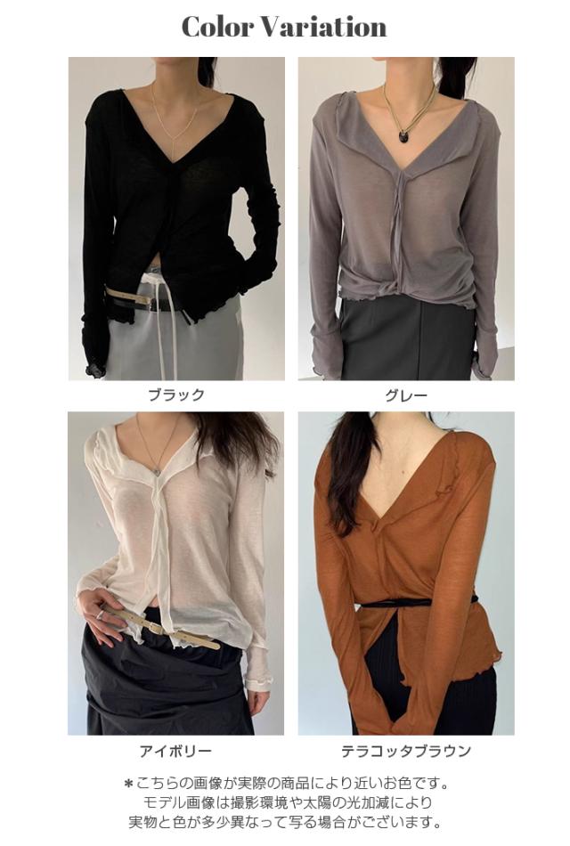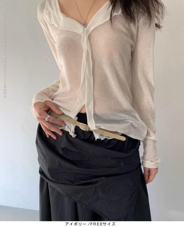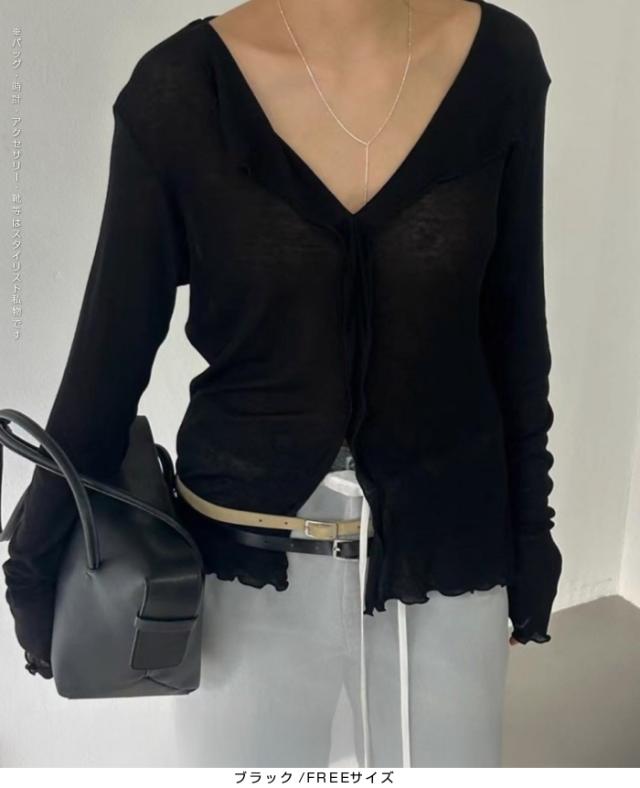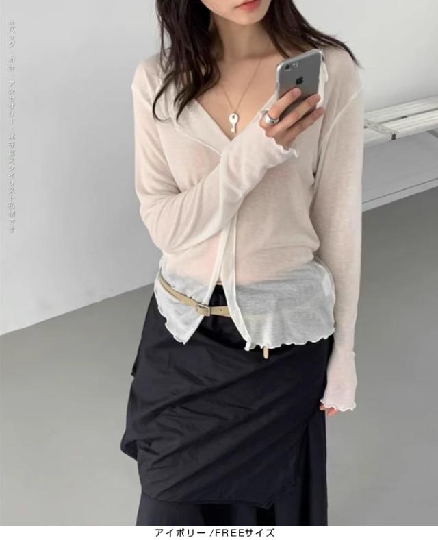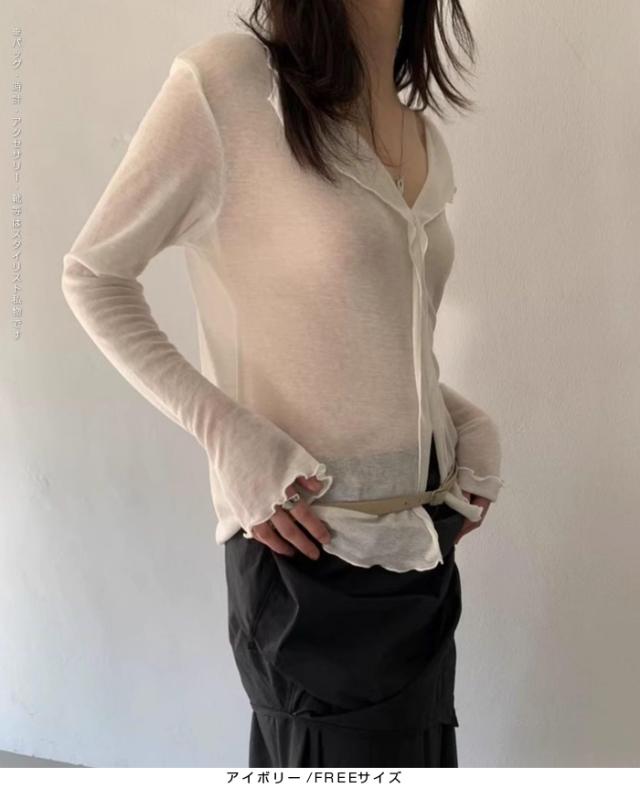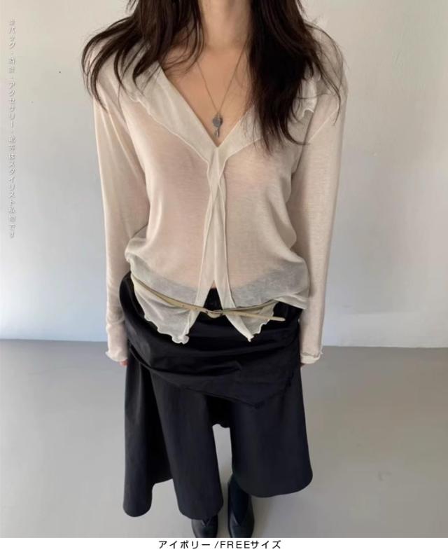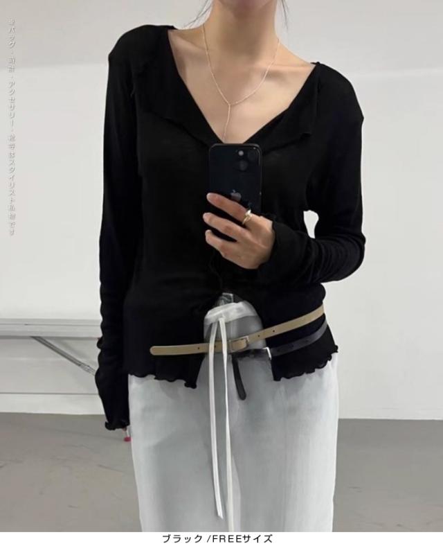 【前後2WAY&シアー感のある長袖トップス】 前後どちらでも着用できる2WAY仕様の長袖トップス。 軽やかで肌触りの良い透け感素材を使用し、 レイヤードや抜け感コーデにぴったり。 メロウ仕上げの縁取りと程よくフィットするシルエットが、 フェミニンかつこなれ感を演出。 シーズンを問わず着回せる、 1枚あると便利なアイテムです。 |