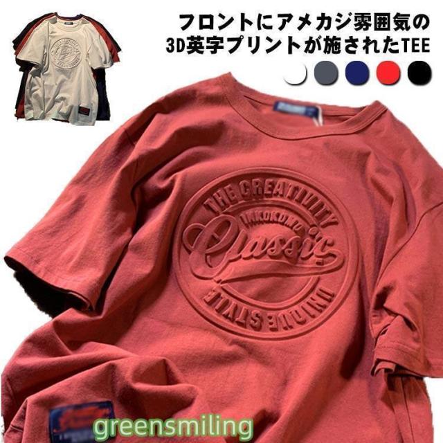 tシャツ カットソー 半袖 アメカジ メンズ 古着風 英字 3Dプリント 無地 シンプル レトロ トップス アメリカン おしゃれ ストリー