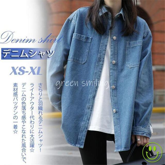 デニムシャツ レディース 長袖 綿 ボタンダウン ジャケット ヴィンテージ レイヤード シャツ アウター 無地 カジュアル ゆったり 秋 冬 おしゃれ