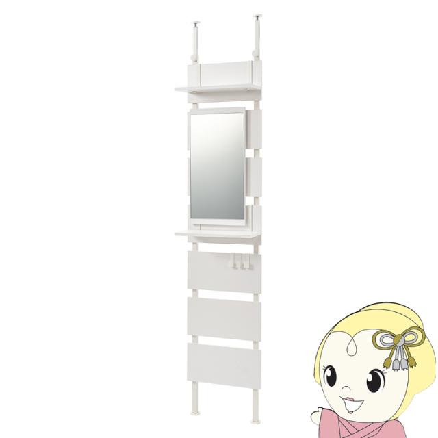 突っ張りラック 幅40cm 突っ張り棚 突っ張り棒 棚 ミラー付き 鏡 ドレッサー 壁面収納 スリム おしゃれ リビング 一人暮らし ホワイト/ホワイト
