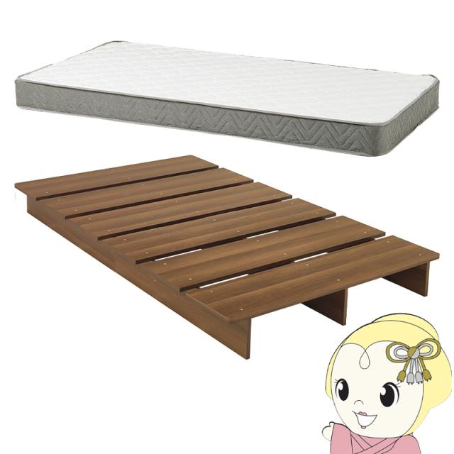 ベッド シングルベッド ベット フロアベッド ロースタイル 頑丈 マットレス付き 棚 スノコ 木製 コンセント ボンネルコイルマットレス ブラウン