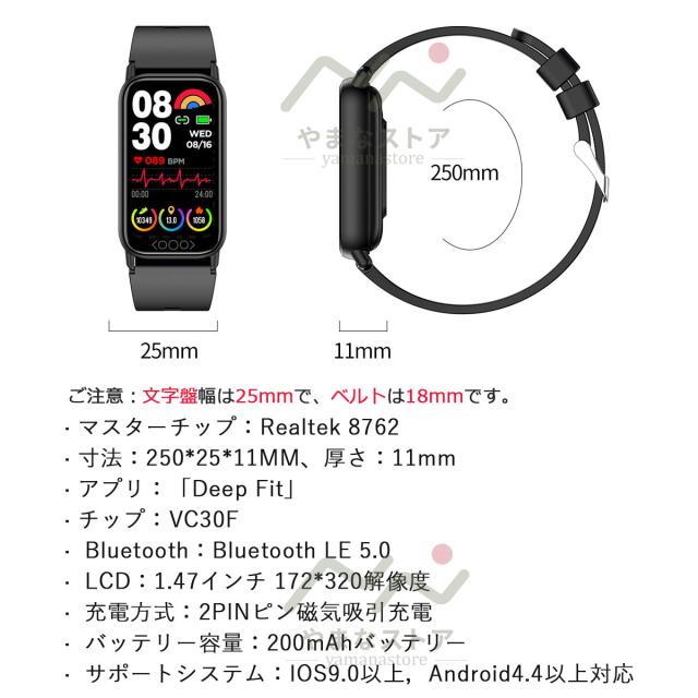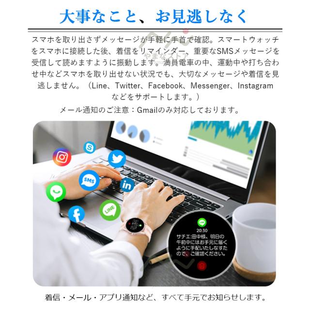 - 初めてのスマートウォッチ。 Apple Watchなど買って合わないと嫌でお試しな感じで購入。 かわいいし充電されていたし、バンドも柔らかく睡眠中もつけることができました。良い買い物をしました。
