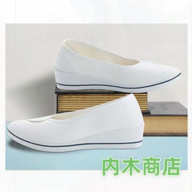 ナースシューズ ウェッジソール お仕事靴 疲れにくい 白 厚底 看護師 キャンバス 通気 ムレ対策 レディース ローヒール パンプス 静音 軽い 衝撃吸収 滑りにくい 立ち仕事 ブラック ホワイト ドットブラウン デニムブルー