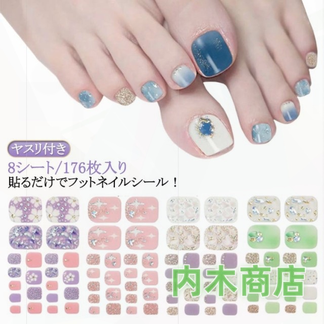 売上急増中 8シート/176枚入り ネイルシート 収納便利 シール グリーン ジェルネイルシール ブラウン 金 フットネイル ネイルシール 秋 フットネイルシール ゴールド 夏 貼るだけ ペディキュア 大人 足 韓国 ピンク パール キラキラ 送料無料