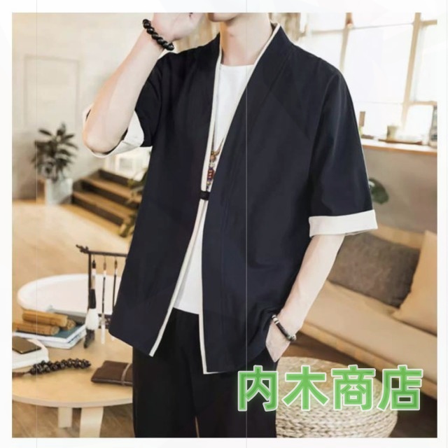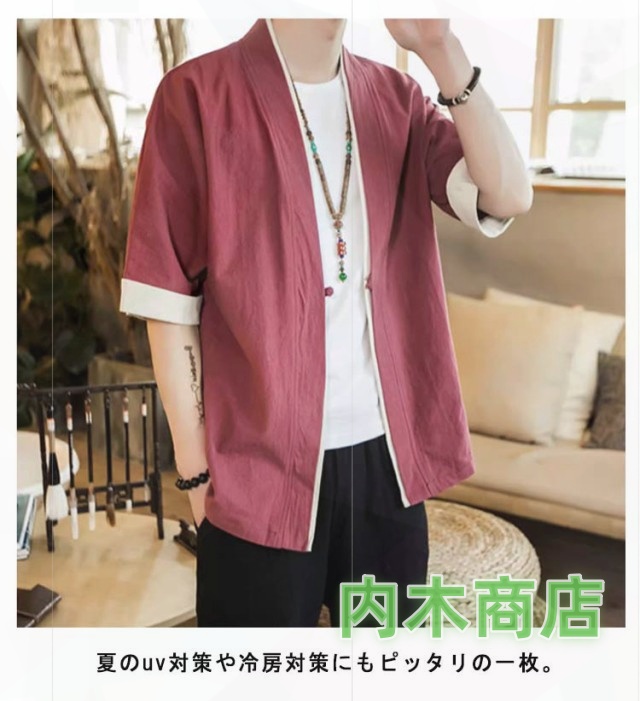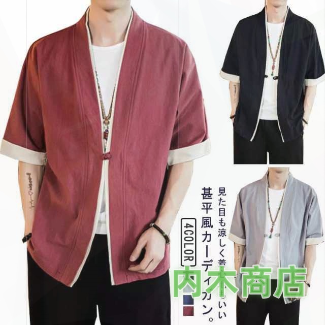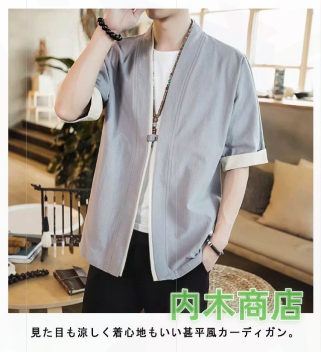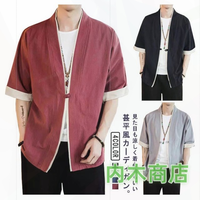 即納OK メンズ 在庫限りの大特価 品質安心 着物 カーディガン 甚平式 ゆったり レイヤード M 半袖 オーバーサイズ 浴衣 無地 2XL 重ね着 XL SNS話題 サマーカーディガン 前開き 花火大会 和風 アウター 羽織 3XL トップス L