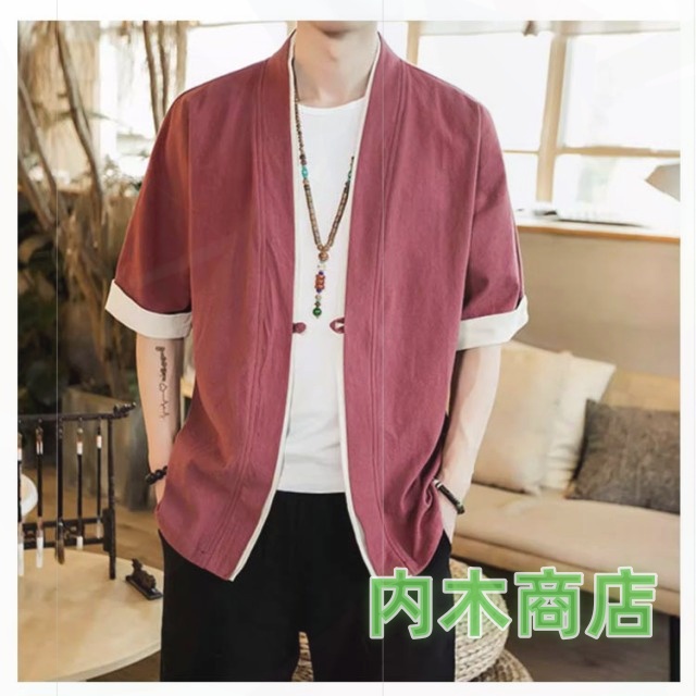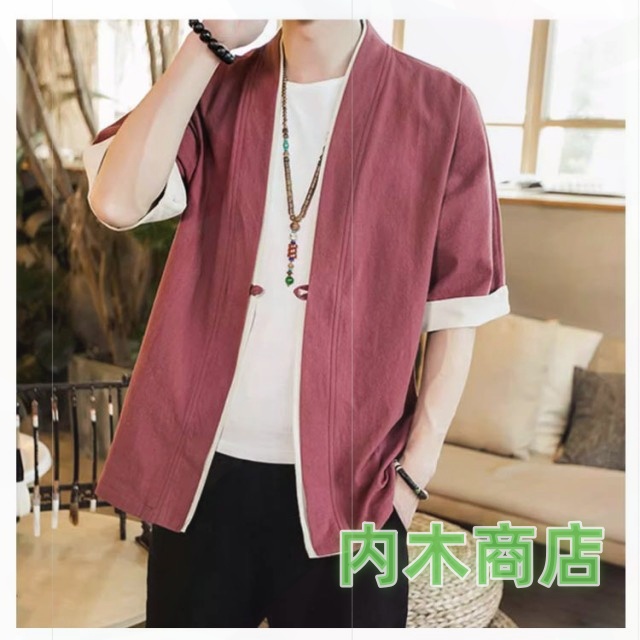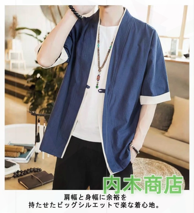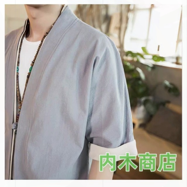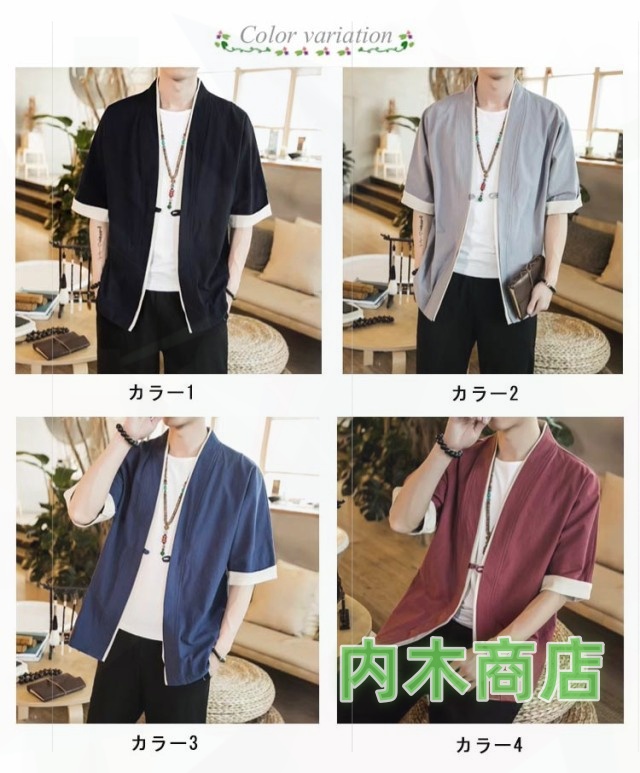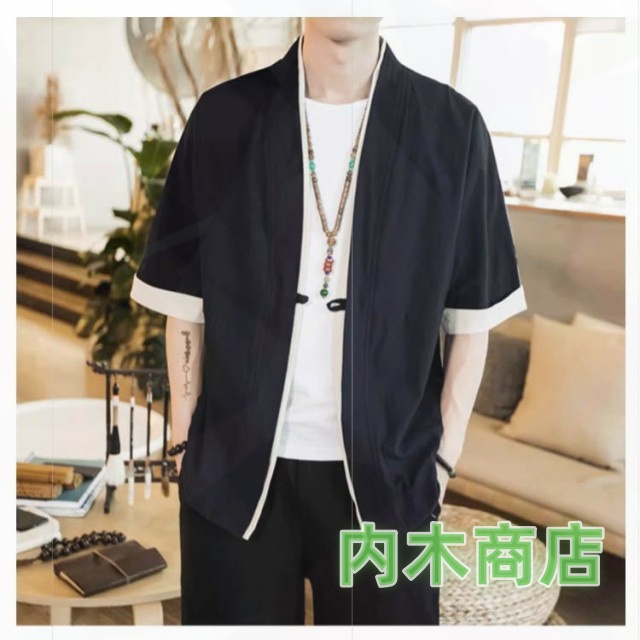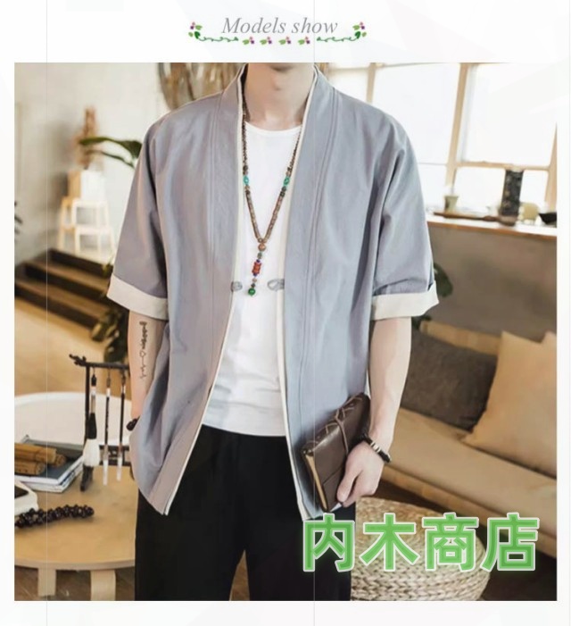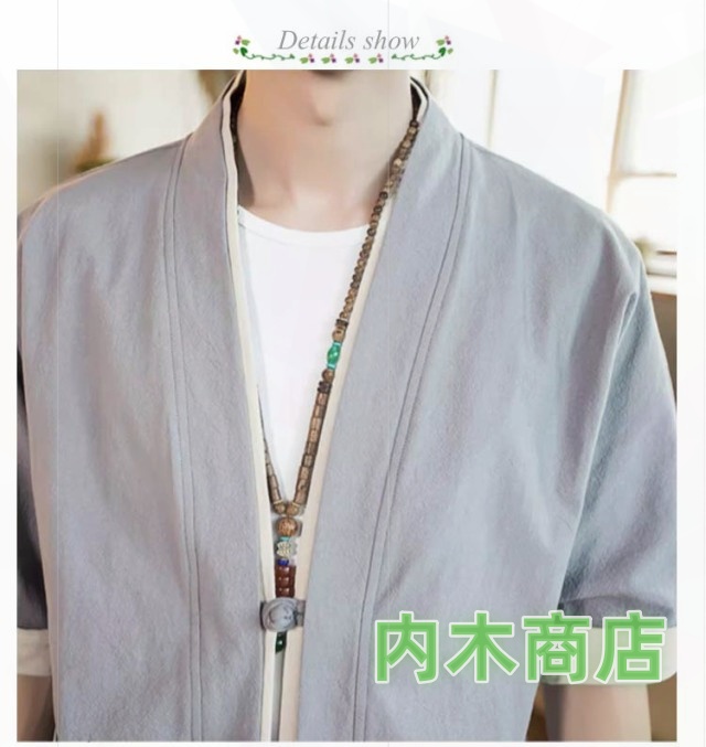3XL 無地 XL 夏 トップス サマーカーディガン ゆったり 大きいサイズ 前開き 浴衣 レイヤード 重ね着 カーディガン 羽織 アウター コスプレ 甚平式 オーバーサイズ 2XL 浴衣 L 前開き 和風 M 花火大会 着物 半袖 メンズ