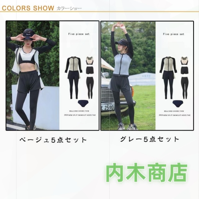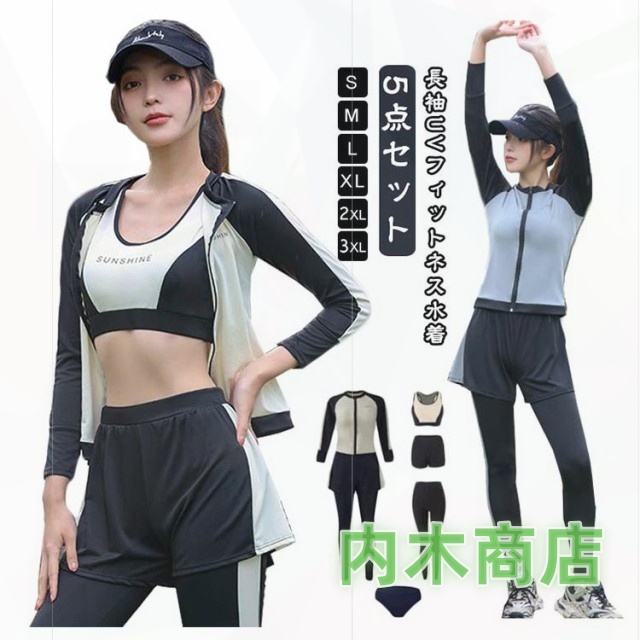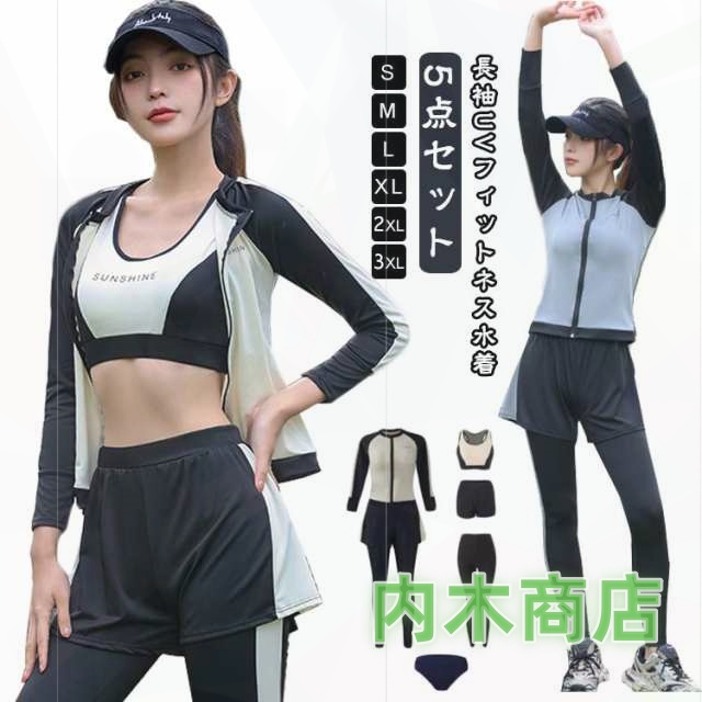 5点セット ラッシュガード スポーツウェア 水着 体型カバー フィットネス水着 UVカット フィットネス レディース スイミング スポーツ 日焼け防止 スイムウェア セットアップ セパレート 女性 上下セット 紫外線対策