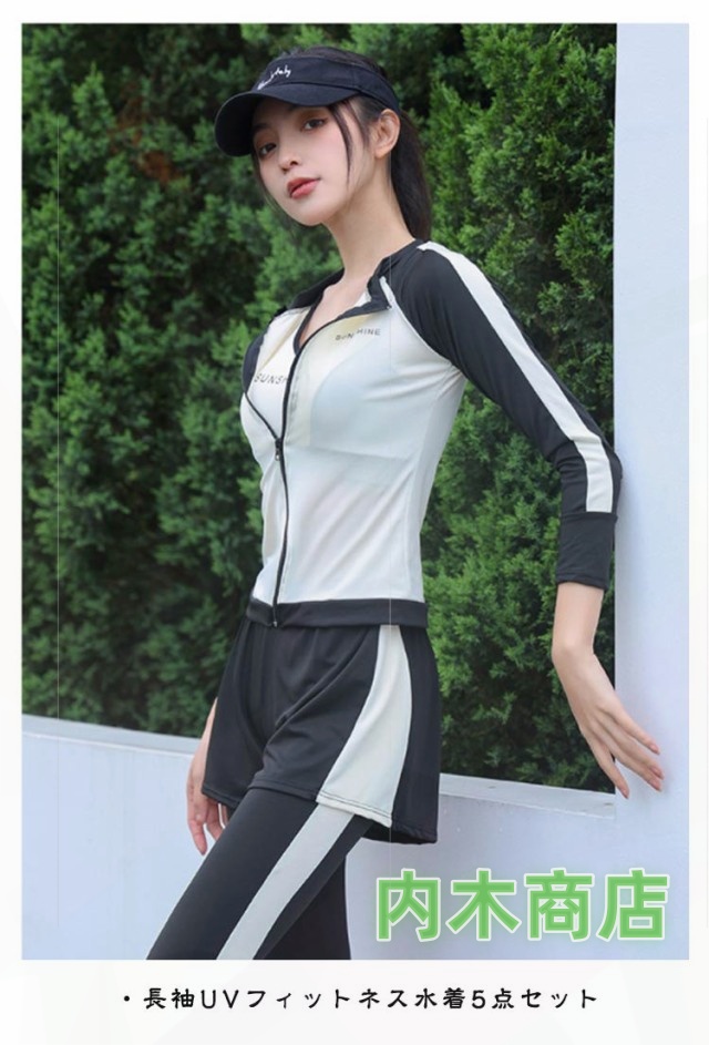 | ・長袖UVフィットネス水着5点セット ・海やプールでのレジャーでは勿論。ジムでのアクアフィットネス、水中ウォーキング等にも! | |