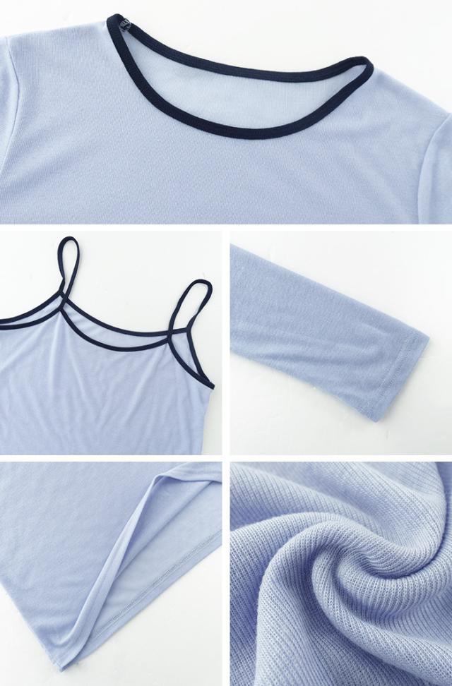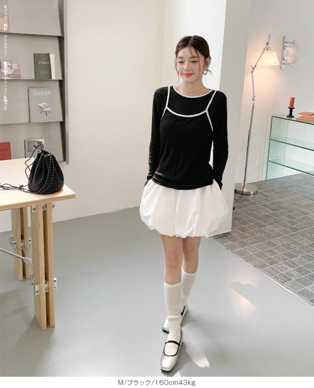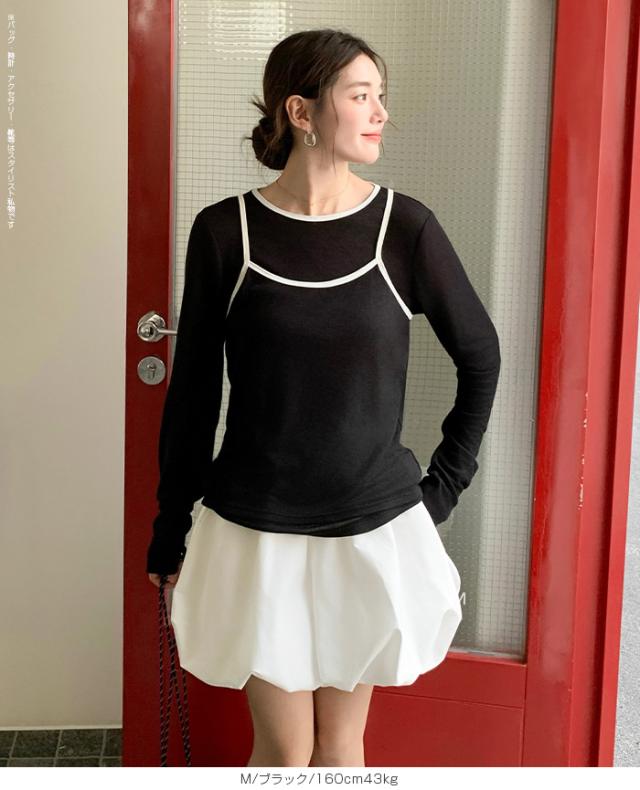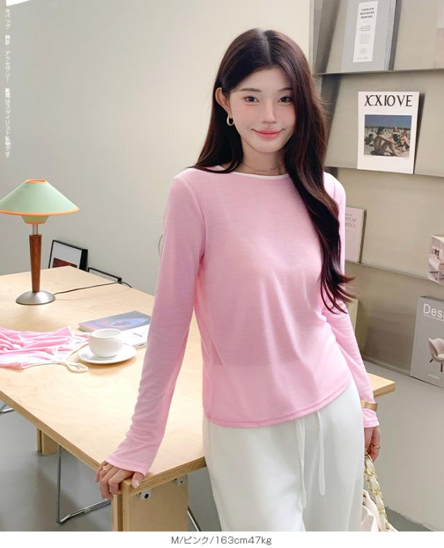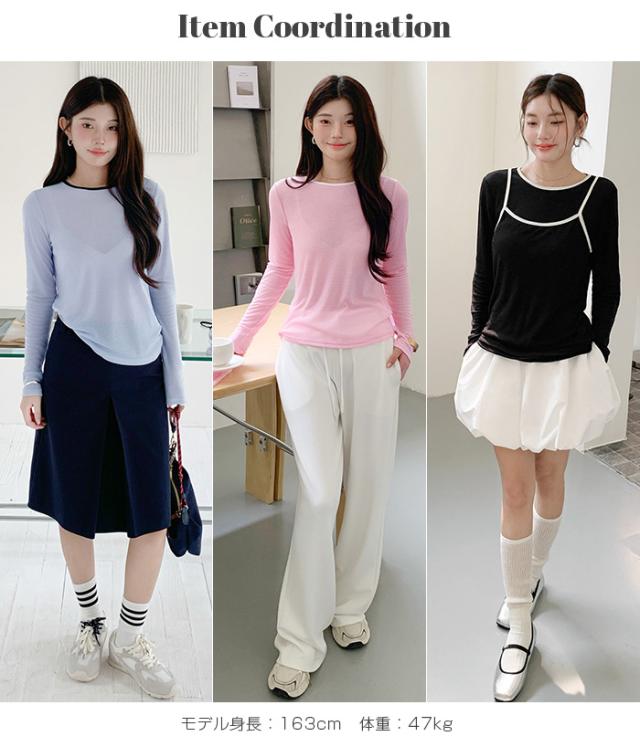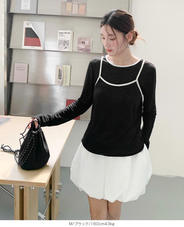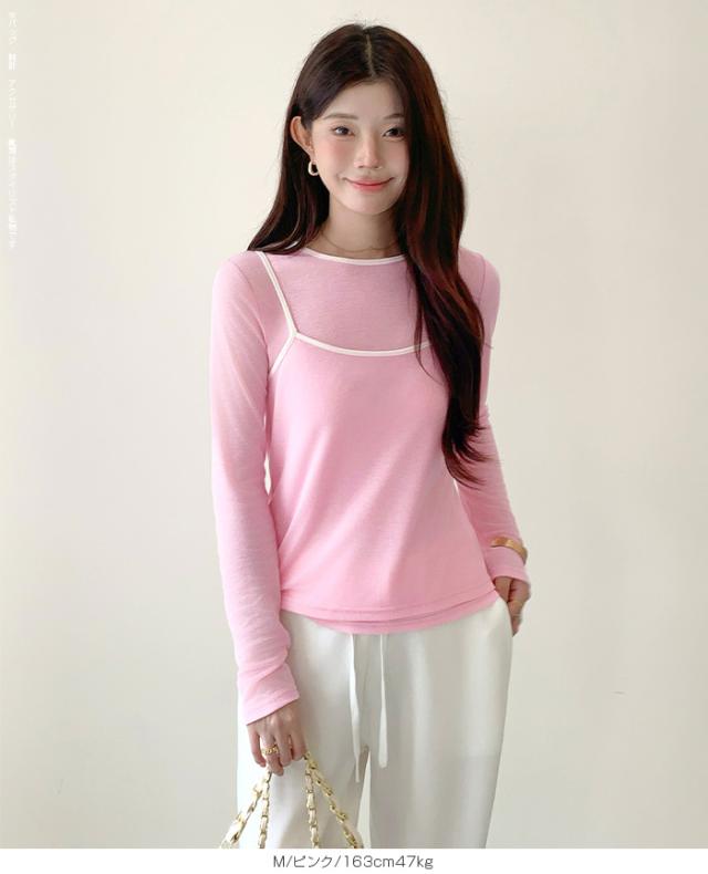MAX1,500円OFFクーポン!カラー シアートップス セット レディース 長袖 Tシャツ キャミソール付き 透け感 レイヤード トップス 2点セット 春夏 秋 韓国風【バイカラーシアートップスSet】ダークエンジェル 送料無料 春新作 ●即納●