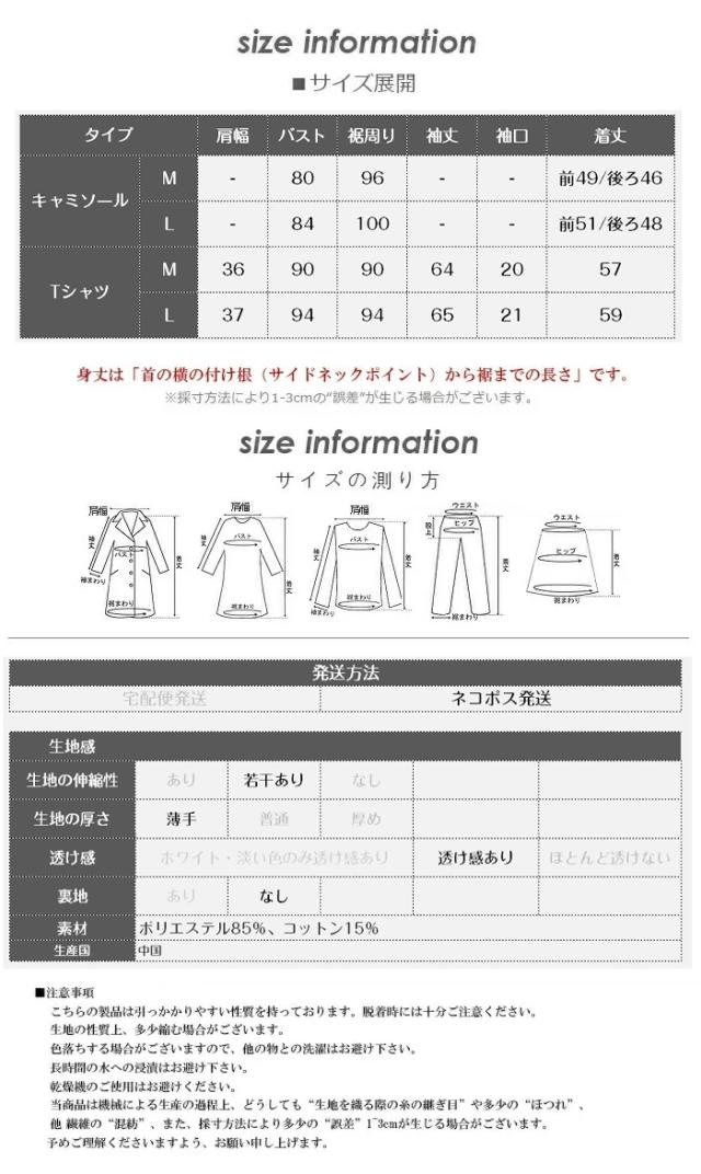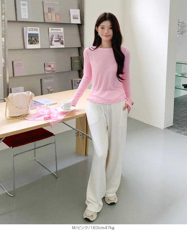 【バイカラーシアートップスSet】 パイピングが目を惹くバイカラーデザインが印象的な、 シアーロングTシャツとキャミソールのレイヤードセット。 程よい透け感が肌を美しく魅せ、着るだけで今っぽい抜け感コーデが完成します。 2点セットでそのまま着てもおしゃれ見え、もちろん単品使いでも着回し力抜群。 さりげないトレンド感と実用性を兼ね備えた、デイリーに活躍する万能アイテムです。 【素材感・着心地】 ・さらりとした薄手のシアーリブ素材で、肌に優しいドライな質感 ・チクチク感がなく、素肌に触れても快適 ・軽やかな素材で蒸れにくく、春夏〜初秋までロングシーズン着用可能 ・程よい伸縮性があり、ストレスフリーな着心地 【シルエット・サイズ感】 ・体にフィットしすぎず、程よく沿うナチュラルなスリムシルエット ・袖丈はやや長めで手元にニュアンスが出る今どき感 ・キャミはややコンパクトな着丈でスタイルアップ見え ・Mサイズ基準:普段M〜Lの方にもフィットしやすいサイズ感 【機能性】 ・ロングTシャツとキャミソールの2点セットで着回し力◎ ・自宅で洗えるイージーケア素材でお手入れ簡単 ・キャミは細ストラップでアウターやワンピとのレイヤードにも便利 ・軽量で持ち運びやすく、旅行やお泊まりコーデにも最適 【着回し&コーデ提案】 ・セットでそのまま着て、デニムやワイドパンツに合わせるだけで旬スタイル ・キャミソールをジャンスカやサロペットのインナーとして着用しても◎ ・シアーTシャツ単体でベストやビスチェ、 ニットとレイヤードしてもおしゃれ ・オフィスではジャケットインにも使える、 抜け感きれいめコーデにも対応 |