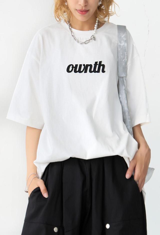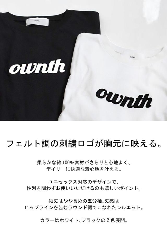 owt-0119 カットソー クルーネック 丸首 フェルト ロゴ 刺繍 シンプル カジュアル ユニセックス 綿100 綿 コットン リブ切替 ヴィンテージ感 シンプル ナチュラル 無地