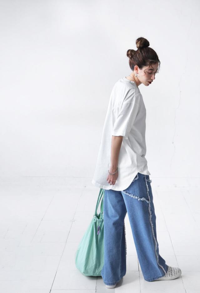 リラックス感のある形状で、体型カバーにも一役買ってくれる万能な一枚です。