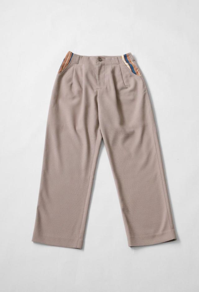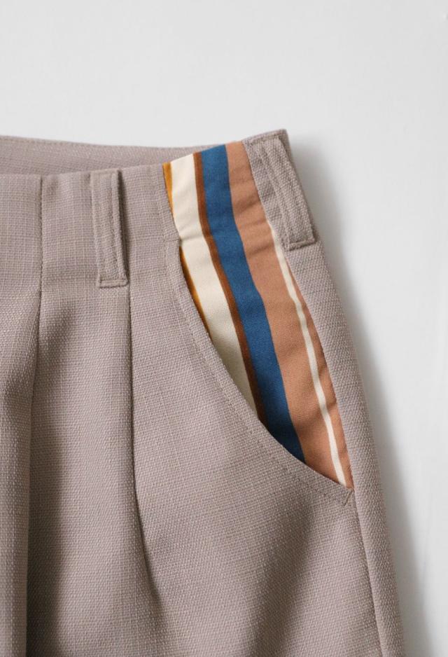 リネンのような風合いときれいめな印象を併せ持つ、ストライプ切替デザインのテーパードパンツです。