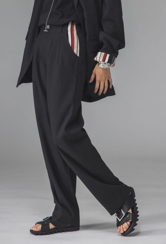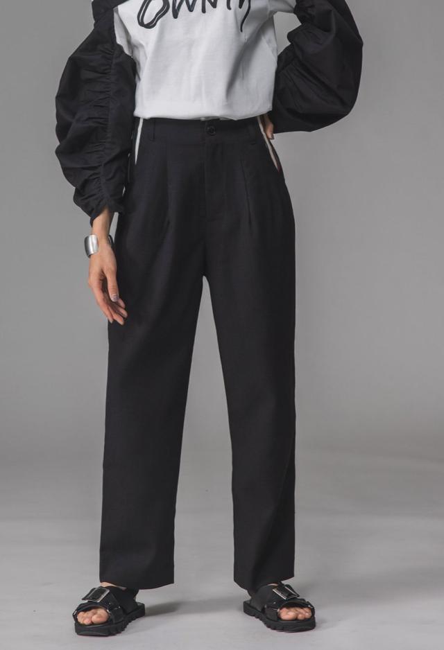 ウエストに施されたツータックが腰回りにゆとりを生み、自然なラインで美脚を演出します。
