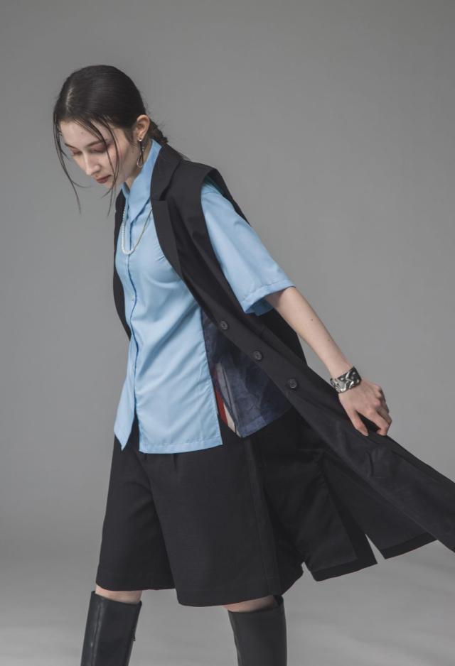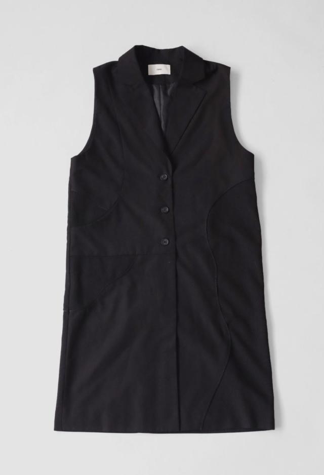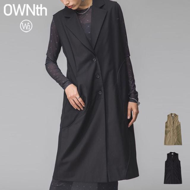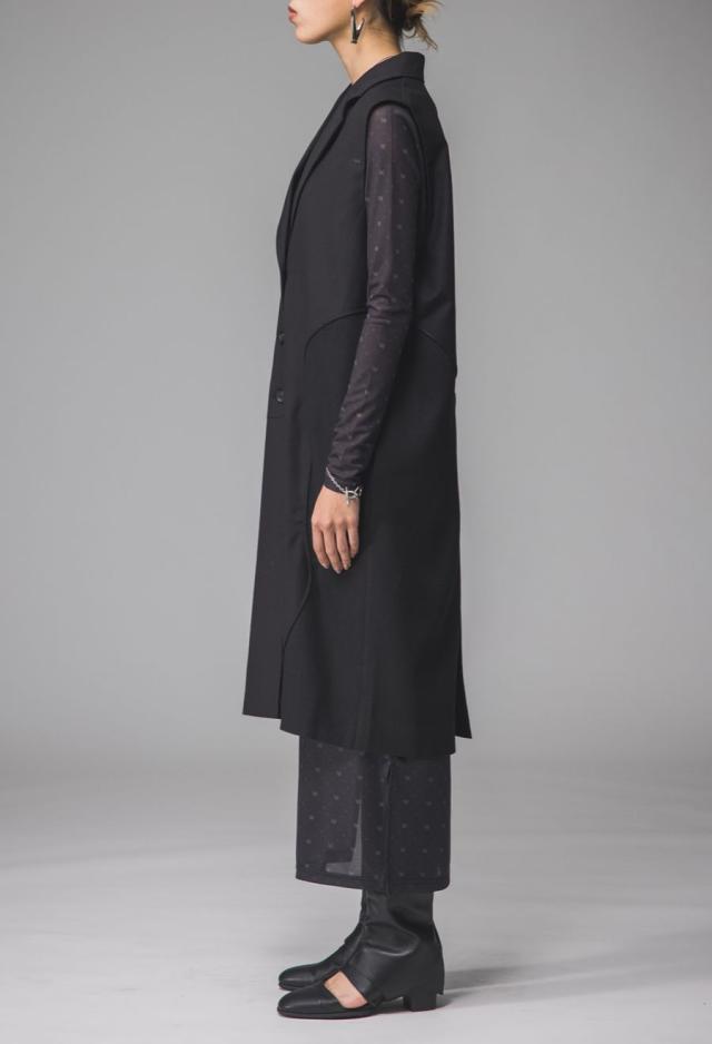 owt-0002 ロングジレ ジレ ベスト ウェーブ 切替 デザインジレ テーラードカラー ジャケット 前開き ドッキング 異素材 トップス 羽織り アウター 体型カバー ロング セットアップ