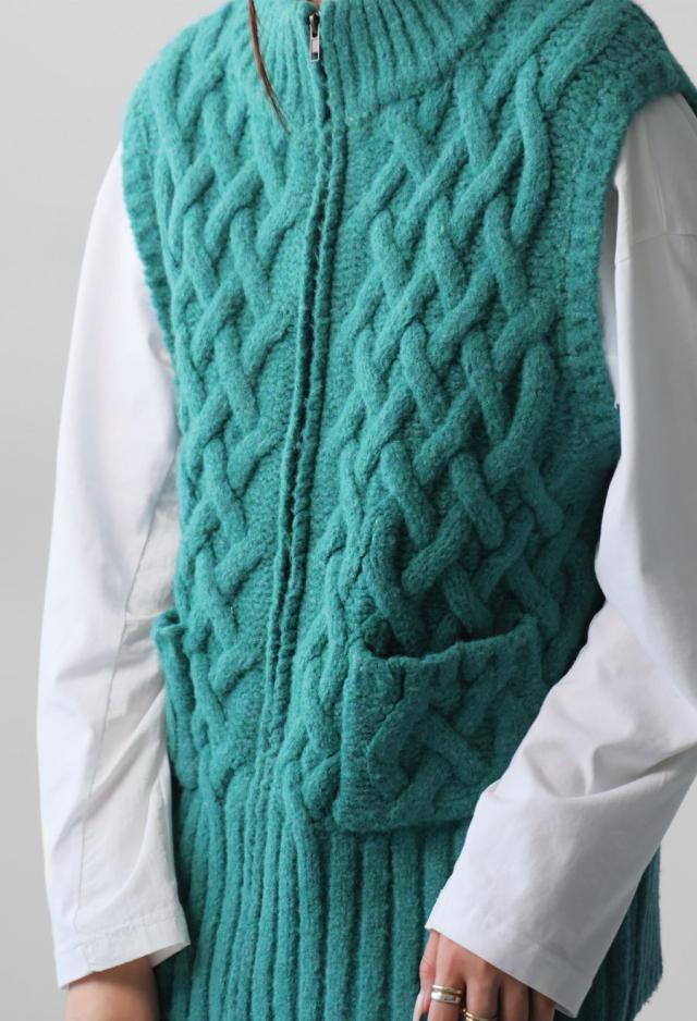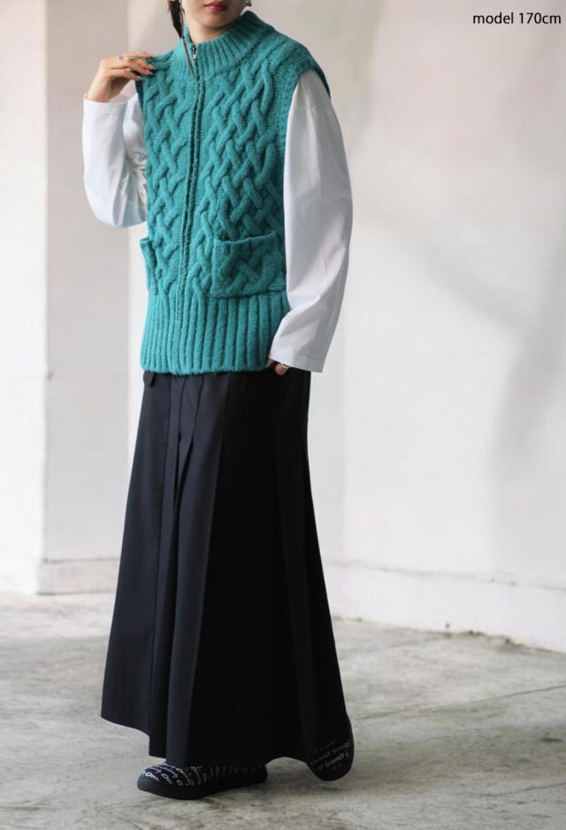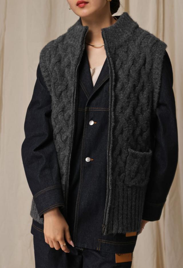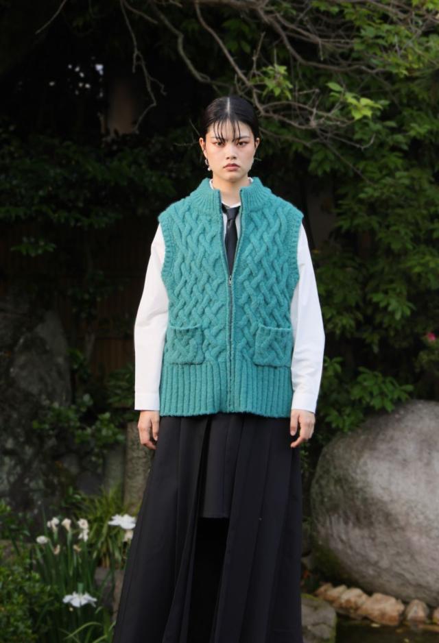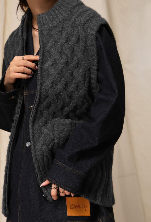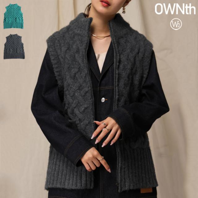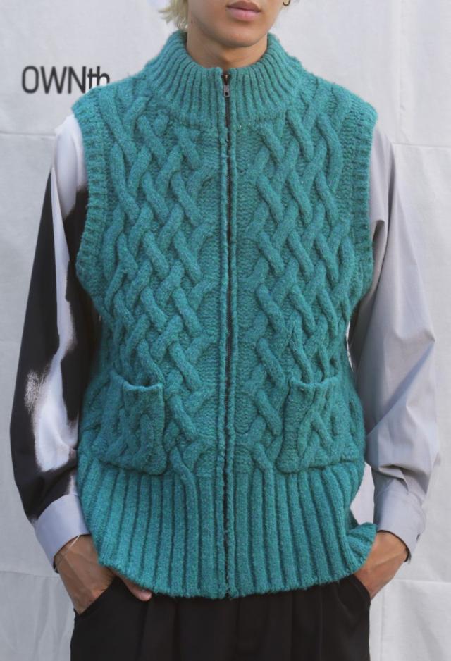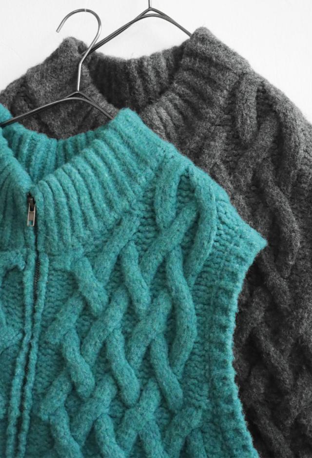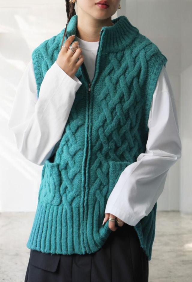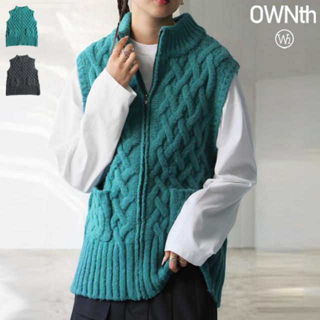 owt-0084 ニットベスト トップス 羽織り 前開き ケーブル ケーブル編み ニット ジップアップ レイヤード ポケット付き ゆったり あたたかい おしゃれ チクチクしない