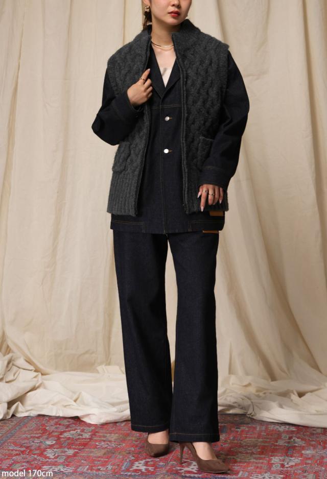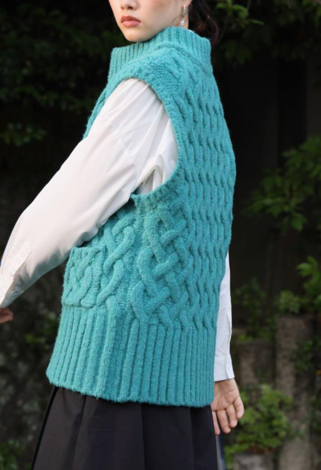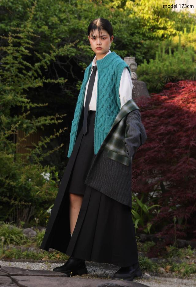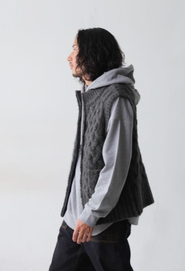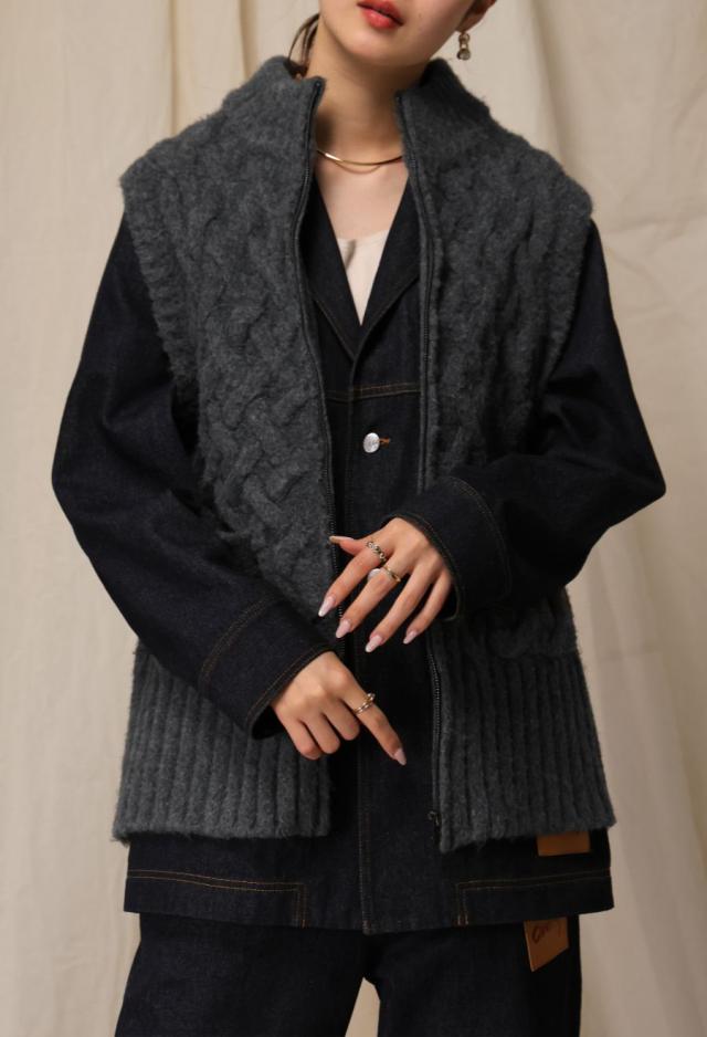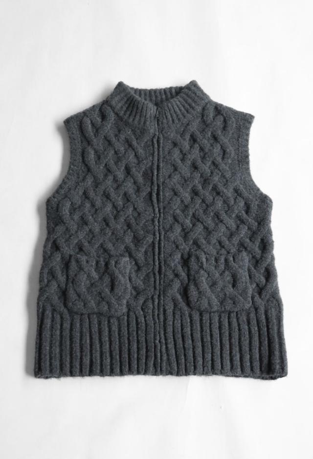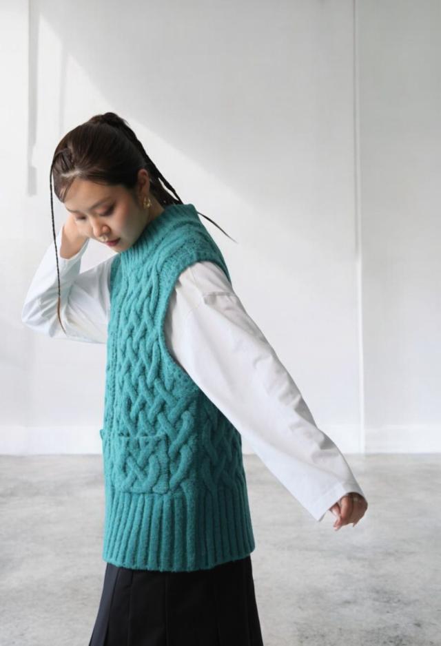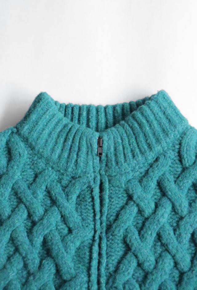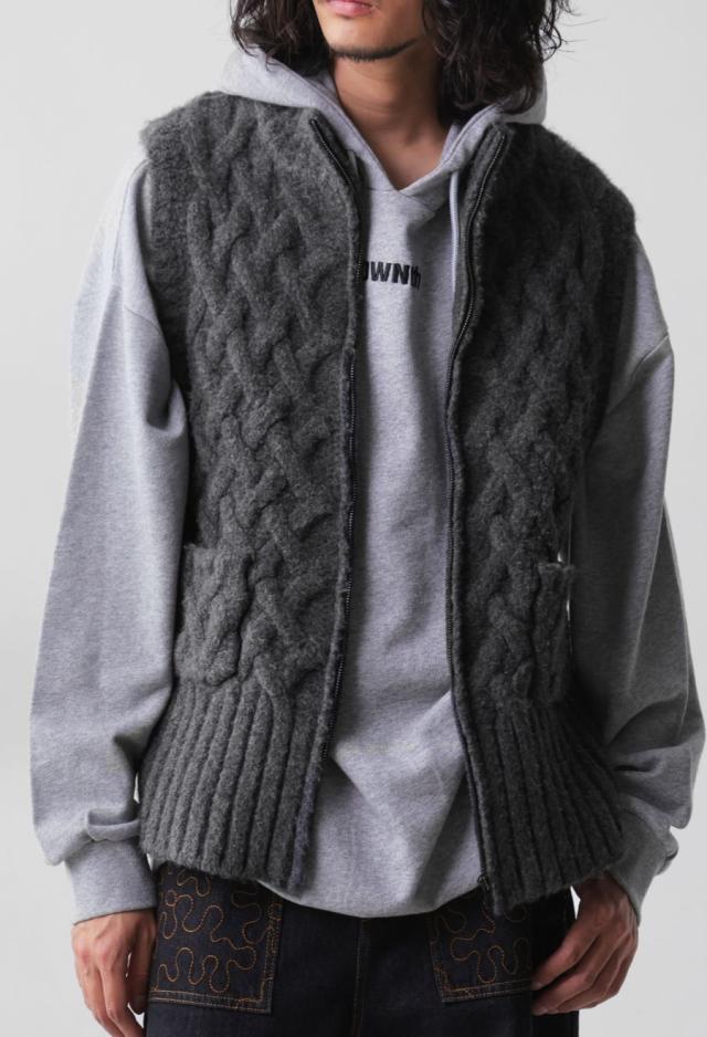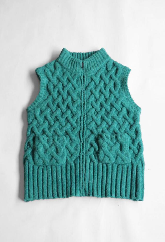 owt-0084 ニットベスト トップス 羽織り 前開き ケーブル ケーブル編み ニット ジップアップ レイヤード ポケット付き ゆったり あたたかい おしゃれ チクチクしない