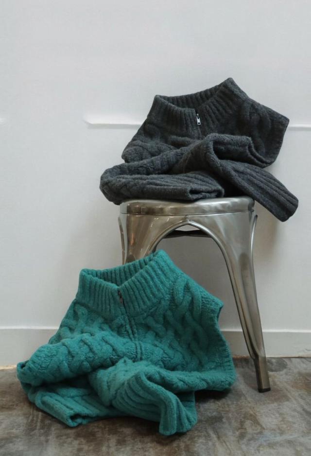 どちらもベーシックで合わせやすく、秋冬の重ね着にひとつあると便利な1枚です。