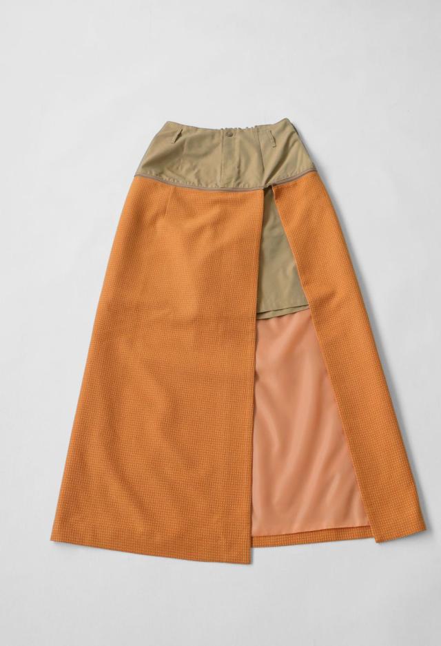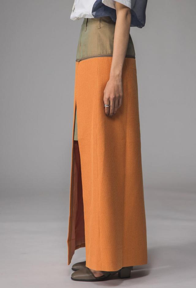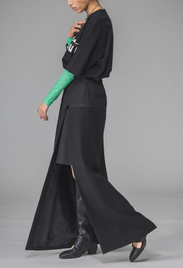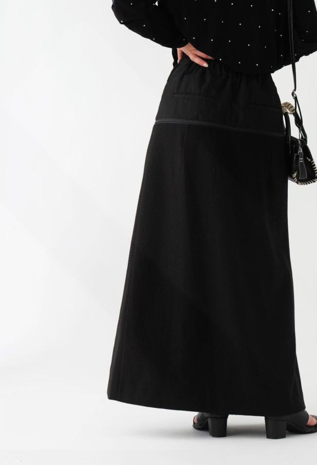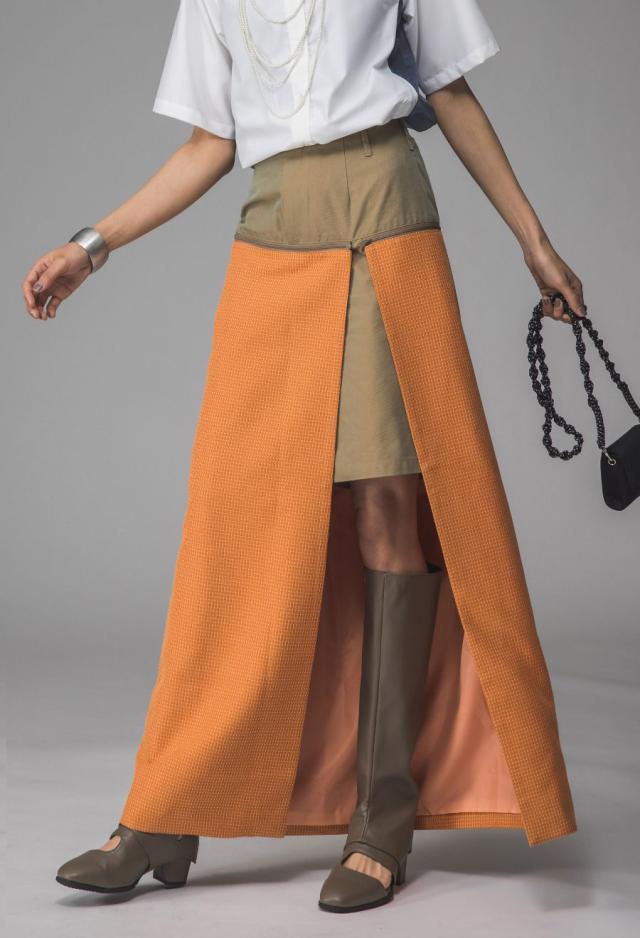 owt-0009 ロングスカート スカート ボトムス ハーフパンツ ショートパンツ パンツ付き 異素材切替 ラメ糸 裏地付き 肌見せ スリット ウエストゴム 美シルエット 取り外し可 無地
