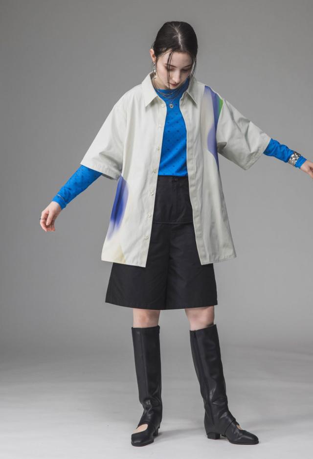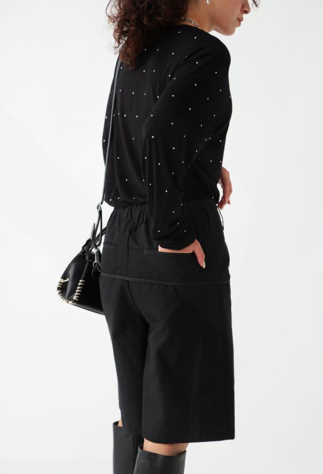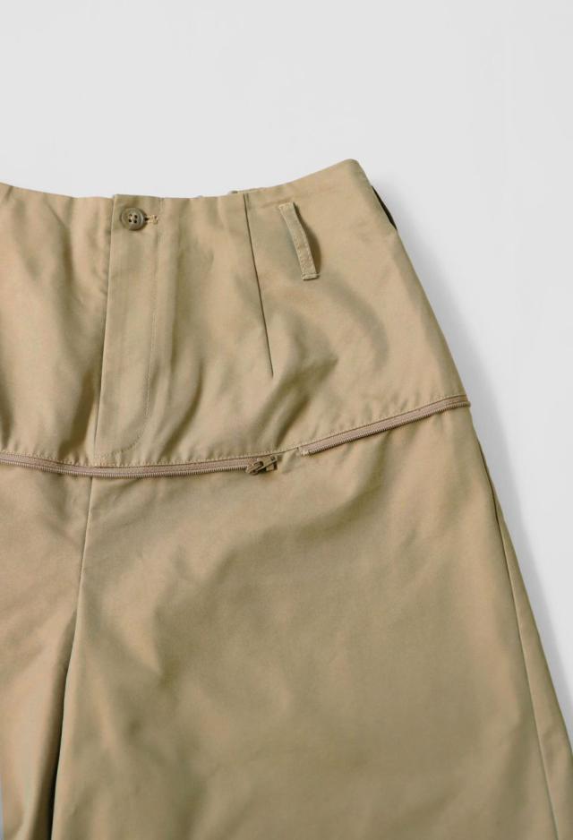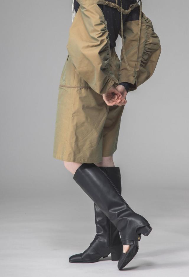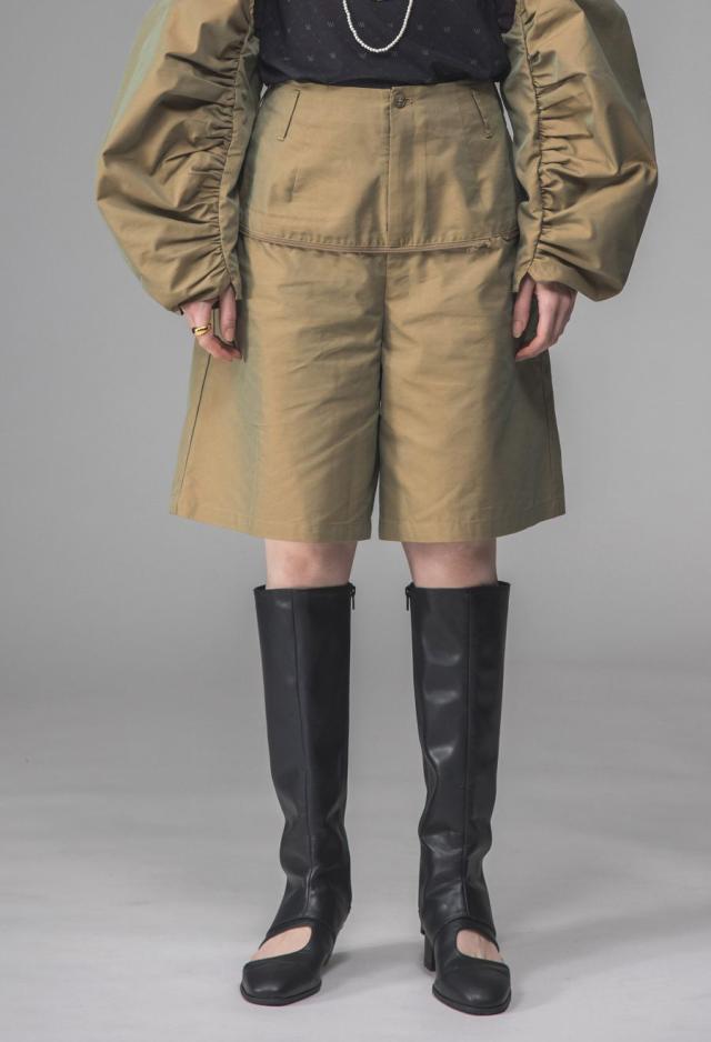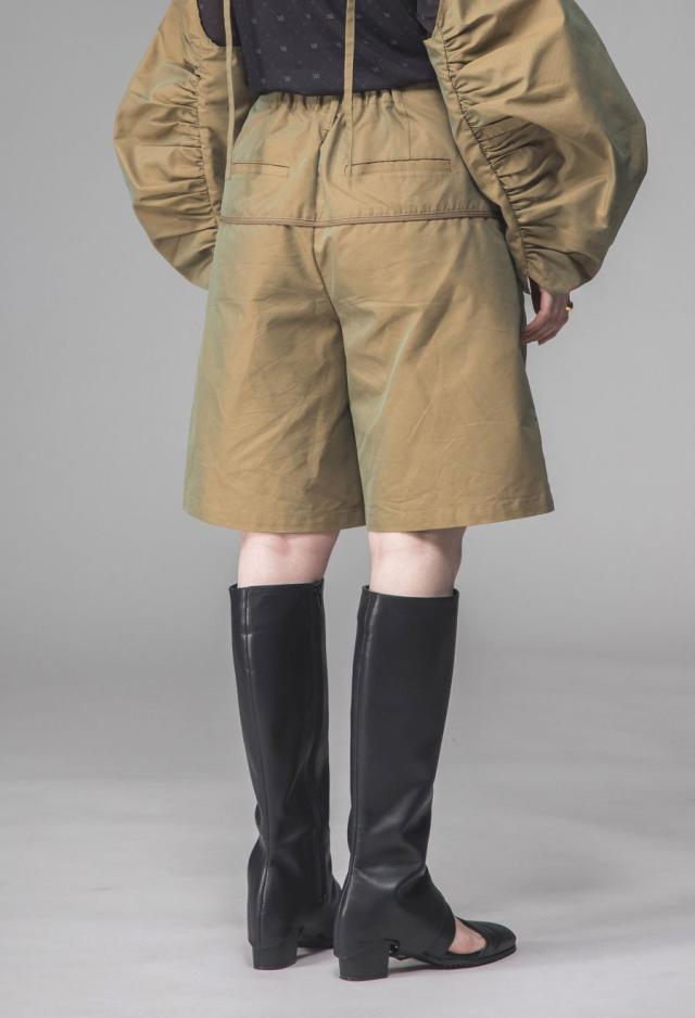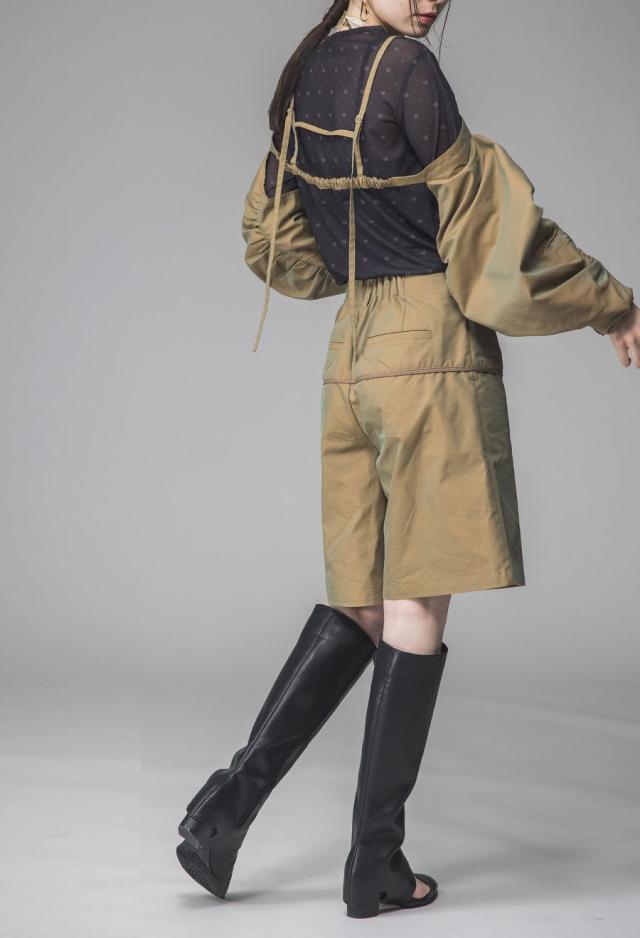 パンツ部分にはシャンブレー素材を使用し、角度により表情が変化。程よいハリ感で美しいフォルムが生まれます。