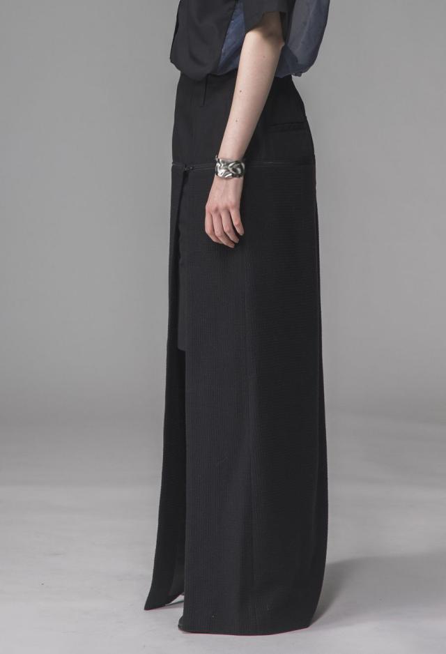 ラメ糸入りのスカートとパンツがレイヤードされた2WAY仕様のロングスカートです。