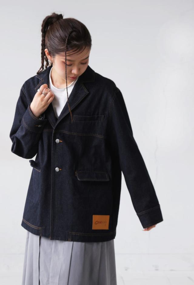 owt-0088 テーラード ジャケット ミドル丈 ユニセックス カジュアル 羽織り 長袖 レディース メンズ シンプル ポケット付き ロゴ 綿 コットン ダブルステッチ