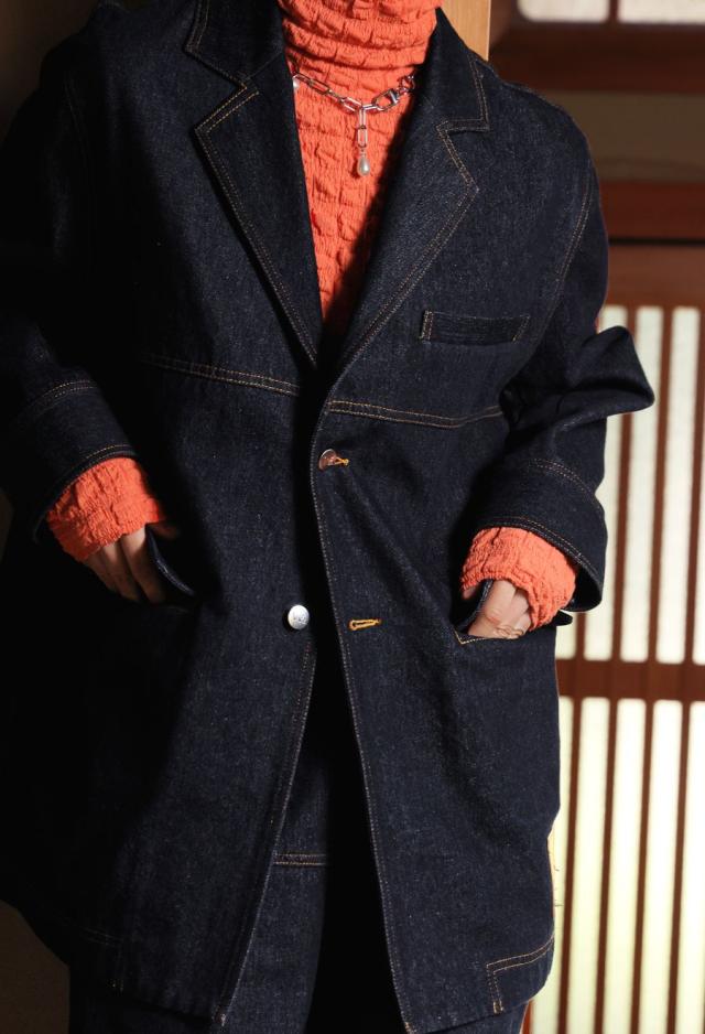 デニム テーラードジャケット ユニセックス 長袖 送料無料・メール便不可 秋新作