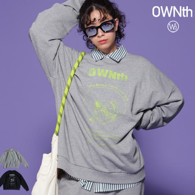 owt-7002 トレーナー 裏毛 スウェット 綿100 ルーズシルエット ヴィンテージ風 古着風 長袖 トレーナー クラブロゴ クルーネック レイヤード 重ね着 お洒落 ラフ
